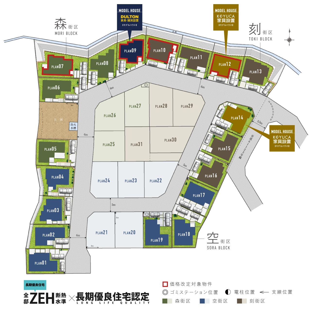 また街区内には公園があり、森の緑とふれあいながら