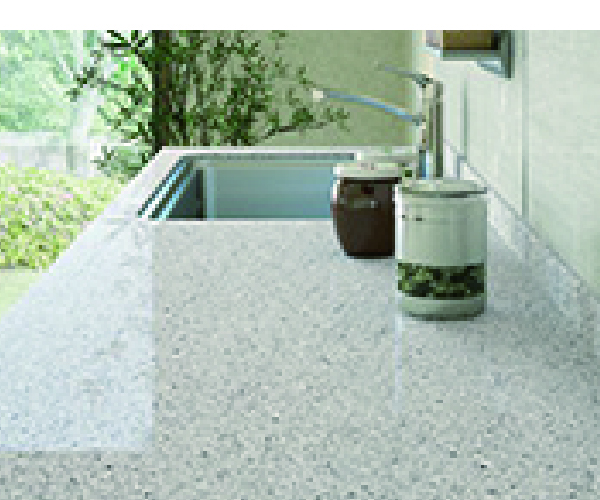 耐久性に優れた、美しくなめらかな質感の人造大理石。油汚れもサッと拭き取ることができます。