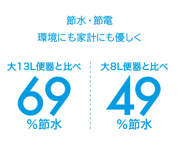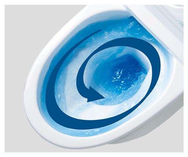 強力な水流が便器鉢内のすみずみまで回り、少ない水でもしっかり汚れを洗い流します。