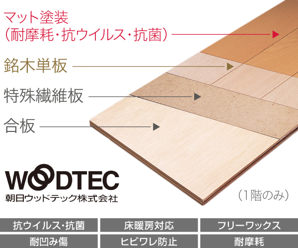 突き板に、天然木の個性あるキャラクターを多く取り入れたシリーズ。SIAA基準適合の「抗ウイルス」「抗菌」フローリング。[1階のみ]