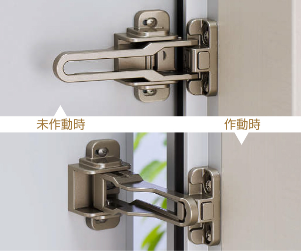 通常は突起している戸当たりも、使わない時にはフラットになり、つまずきを防止。また、フラットなのでお掃除もしやすくなります。
