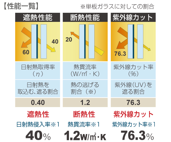 ※単板ガラスに対しての割合 ※1 算出条件はメーカー資料参照