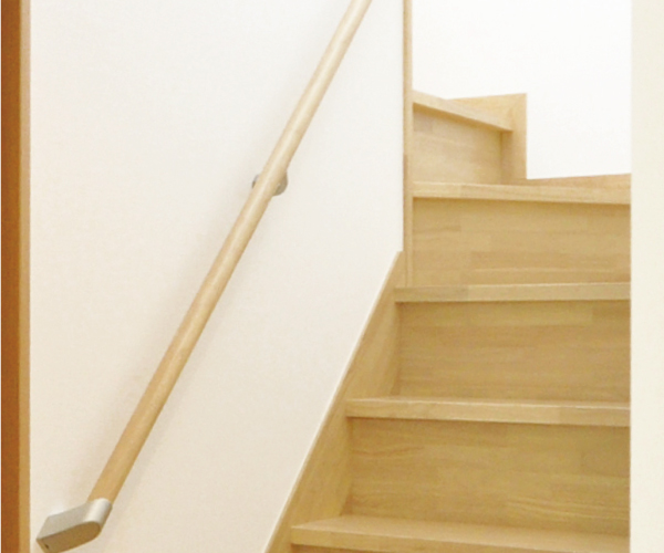 階段での転倒は思わぬけがの元となります。グランディハウスでは、ゆるやかな昇降しやすい階段とし、手すりを標準設置しています。