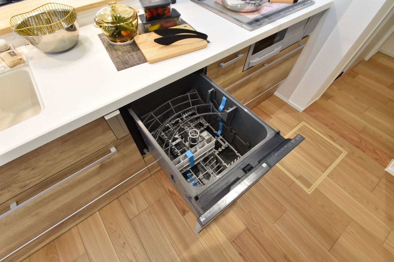 ビルトインタイプ食器洗い乾燥機なら、カウンター上はいつもすっきりで、今まで手洗いにかけていた時間をご家族との時間に使えます。
