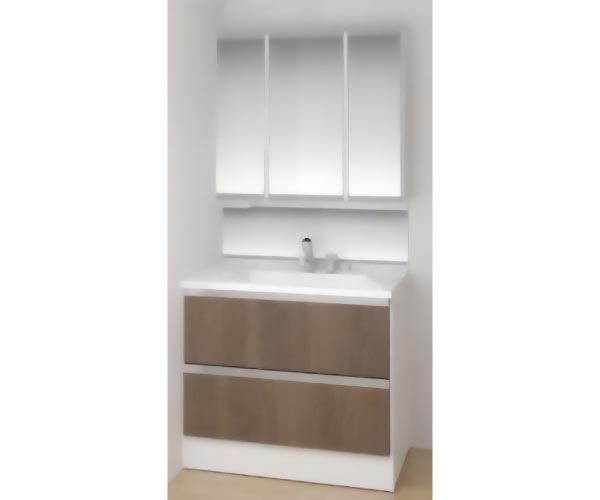 ワイドなカウンターに、影を抑えるツインラインLED 照明が心地よい使用感をプラス。ゆとりの収納力 でサニタリールームをすっきりと演出します。