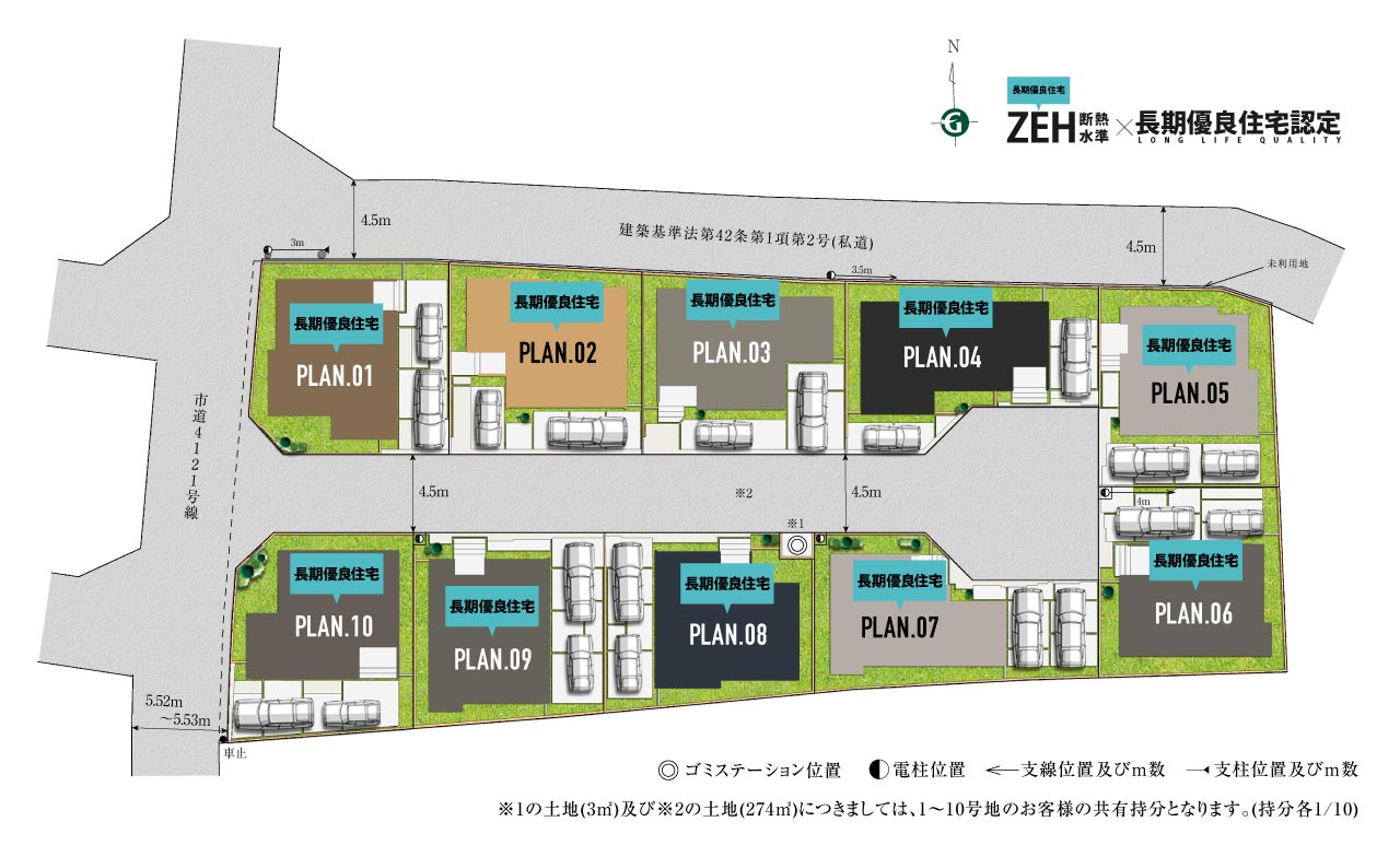 ※その他共有持分/有「販売区画図※1:3m²持分各1/10(1〜10号地)」