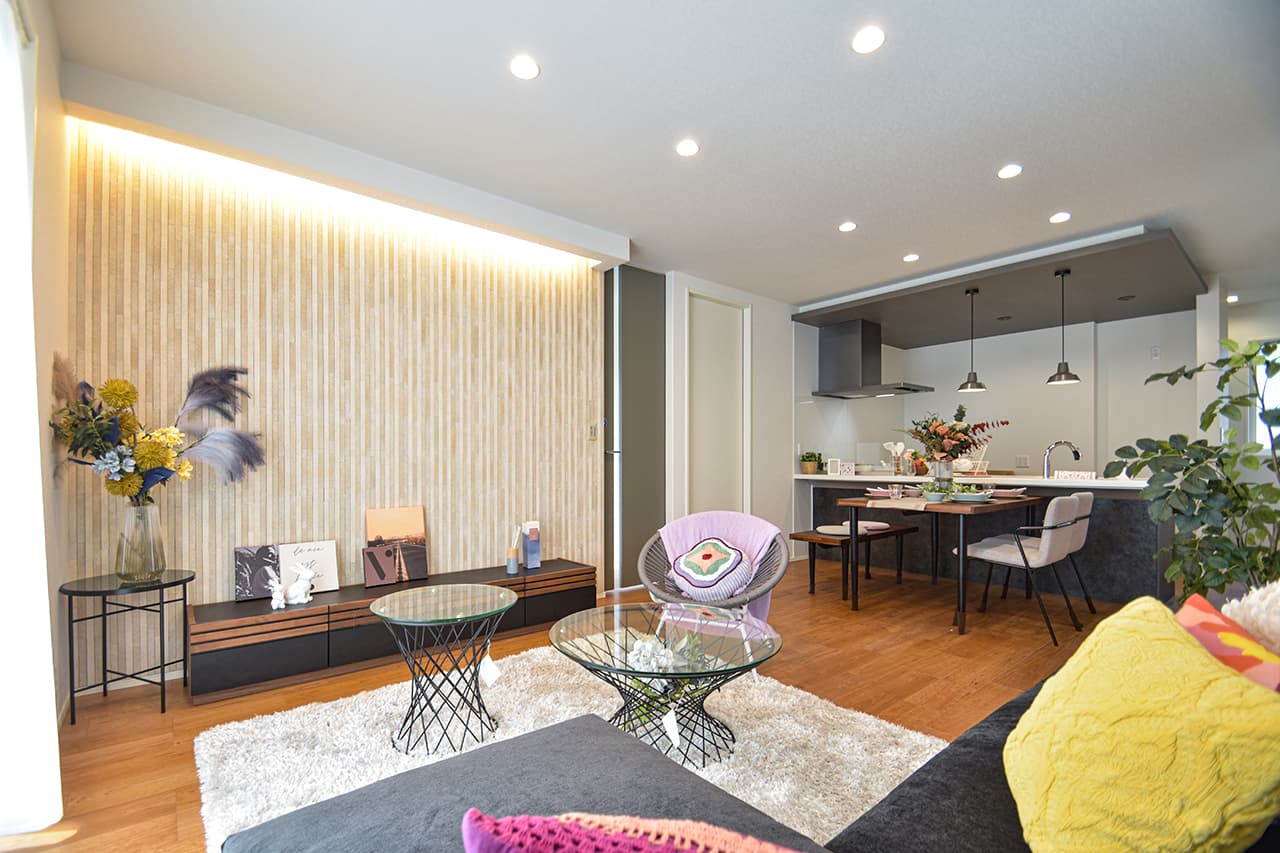 リビングという暮らしのメインスペースは、一日で家族が一番長く過ごす場所。その居心地をさらに高めるために18帖以上のワイドな広さを確保しました。広場のようなパブリックスペースがご家族の集いや団らんを心地よく育みます。
