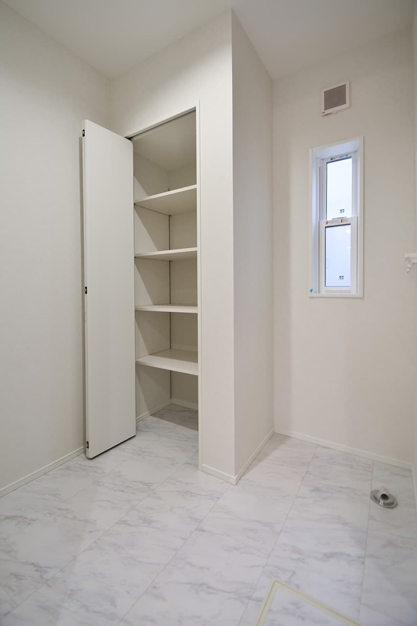 ご夫婦や子ども達の衣類をたっぷりしまえる大容量のウォークインクローゼット。季節の衣類から鞄や帽子などの小物までたっぷり保管可能。ウォークインタイプなので衣類の出し入れや整理整頓もスムーズに行えます。
