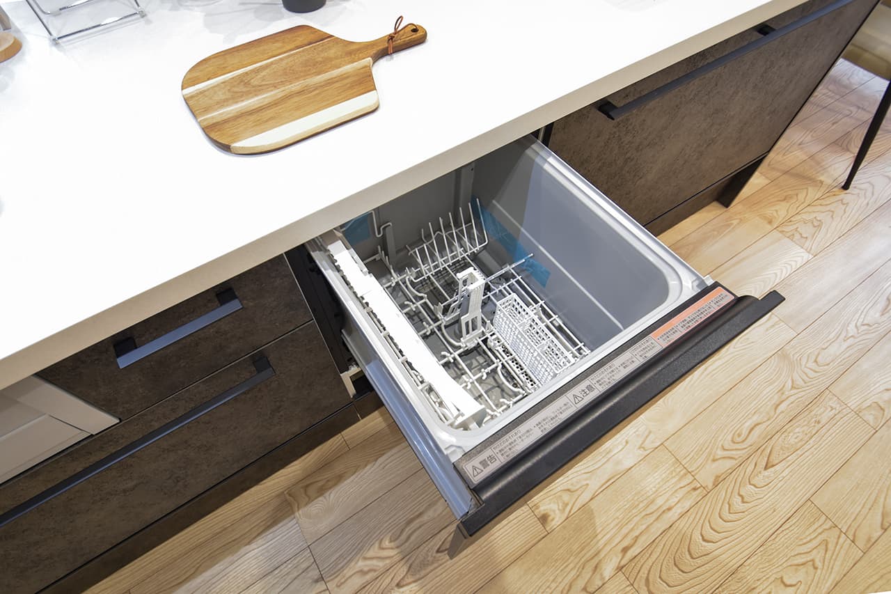 ビルトインタイプ食器洗い乾燥機なら、カウンター上はいつもすっきりで、今まで手洗いにかけていた時間をご家族との時間に使えます。