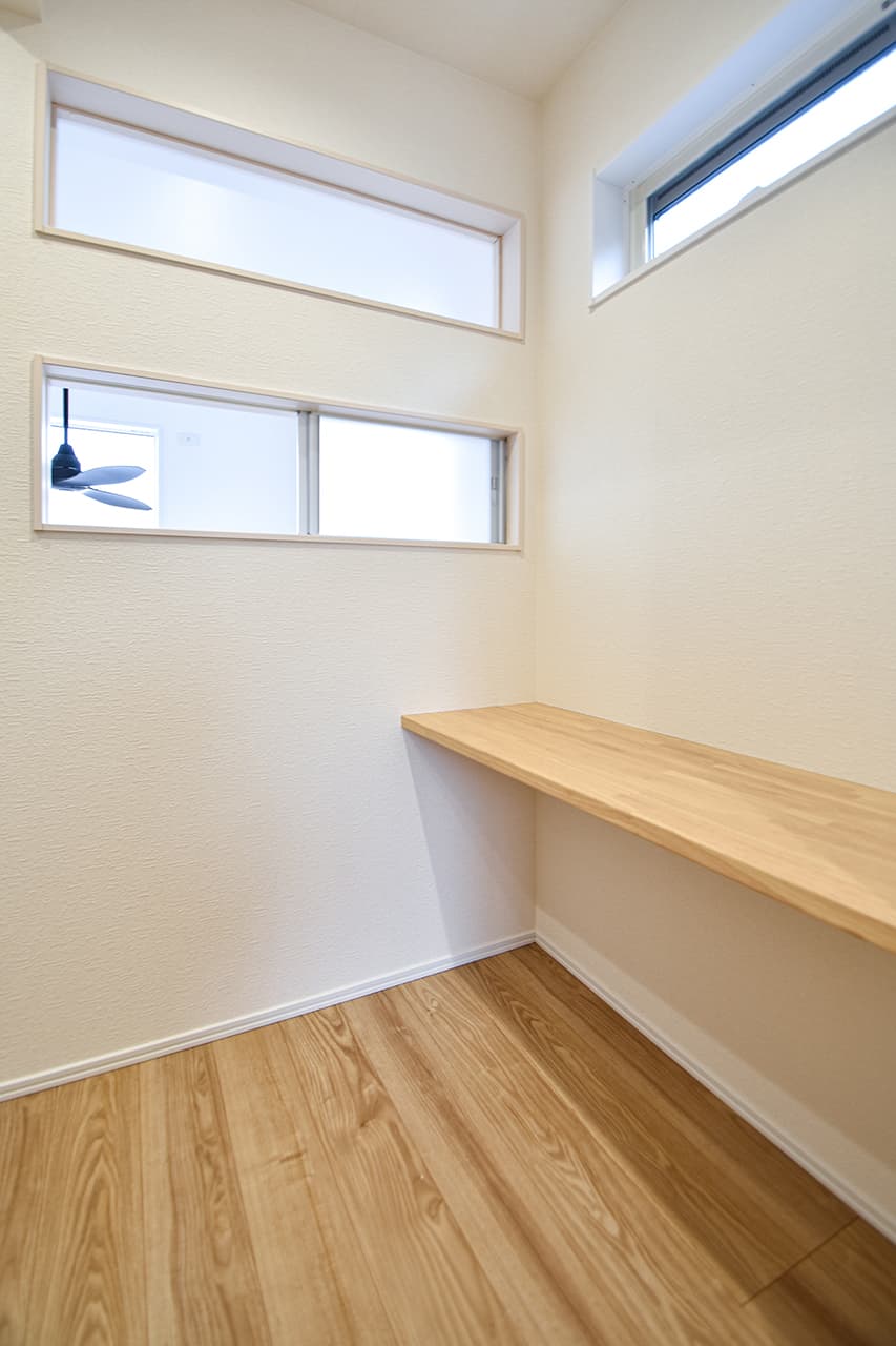 ビジネスのアイデアを考えるSOHO的な使い方や、お気に入りの書籍や趣味をじっくり楽しむリラックスした使い方ができる書斎スペース。自分時間を満喫できるプライベートな空間です。