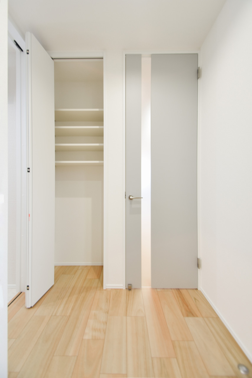 両側から出入りできる2WAY仕様の食品庫。食品や日用品のストックや調理器具の保管に重宝します。