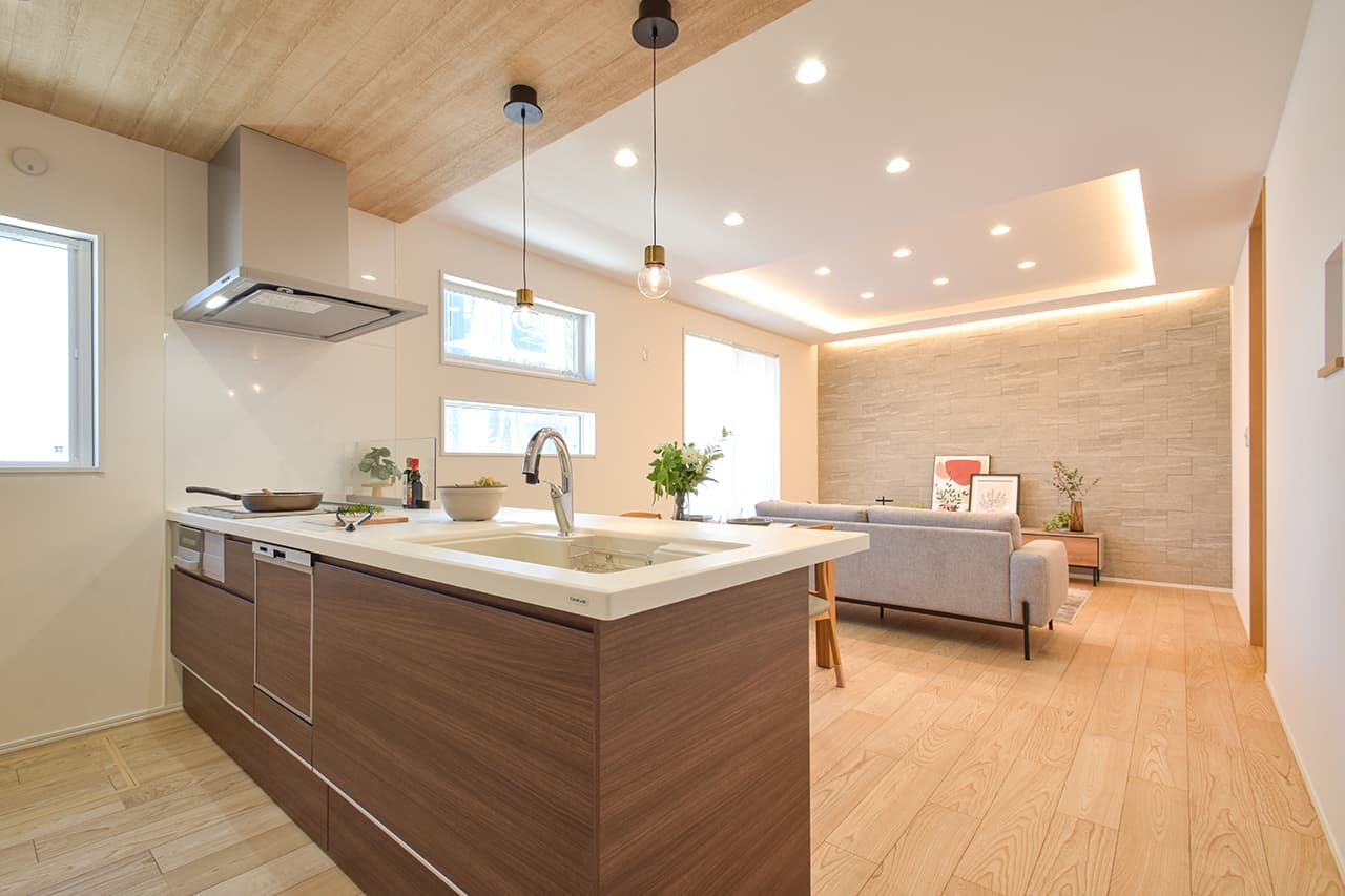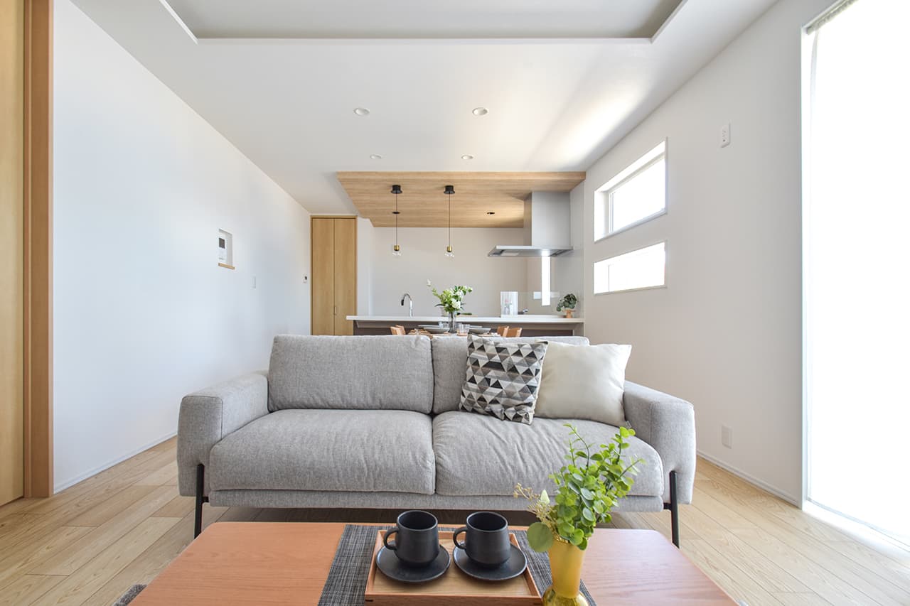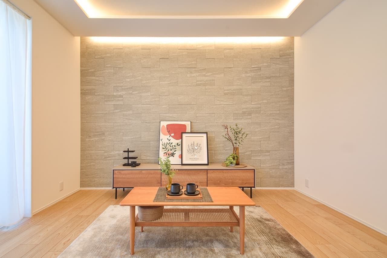 上質感を高める間接照明や、明るく開放的な窓が印象的なLDK