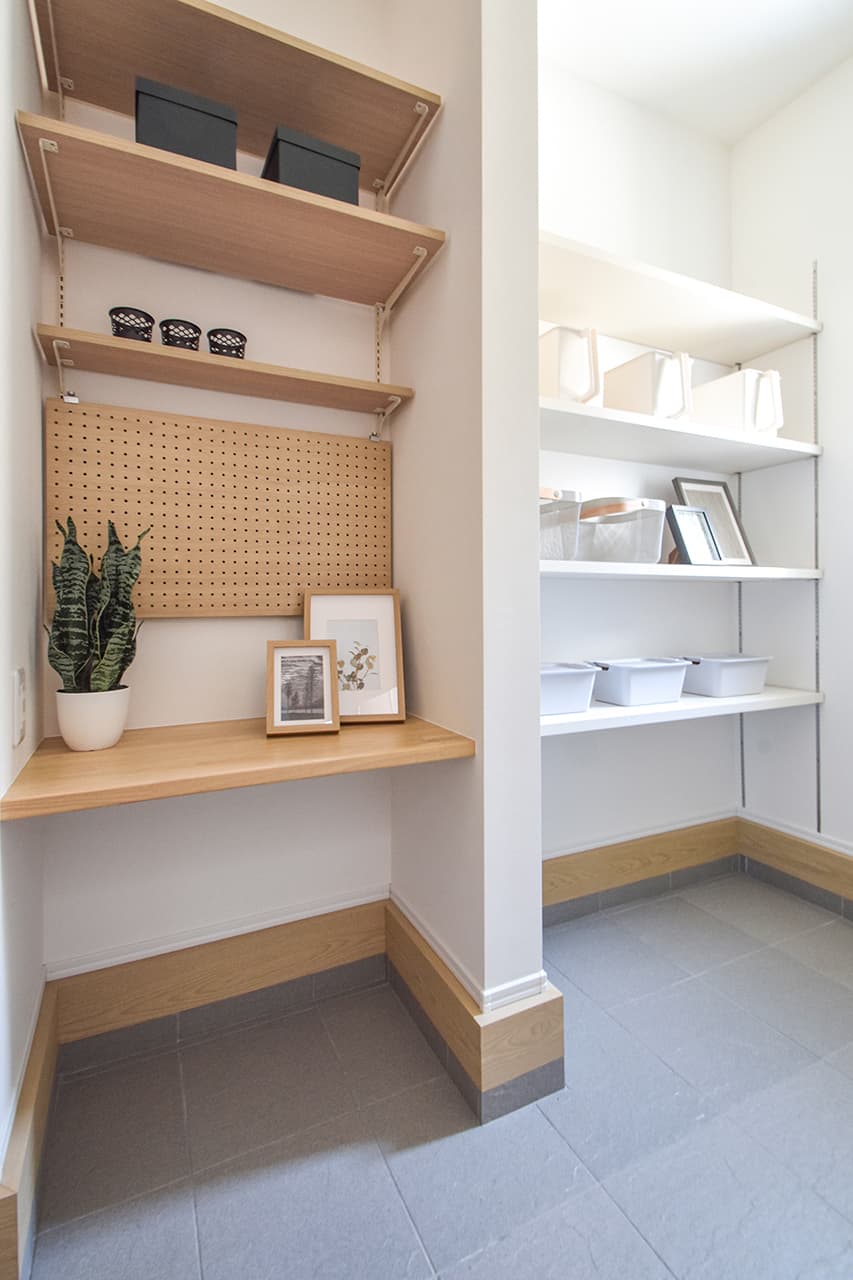 家族の分だけ必要な靴や傘は、玄関を我が物顔で占領しがちなアイテム。靴のまま出入りできるシューズクロークなら外で使う物もしっかり収納!また、玄関先は防災グッズの収納にも最適。もしもの時もすぐに持ち出すことが出来ます。