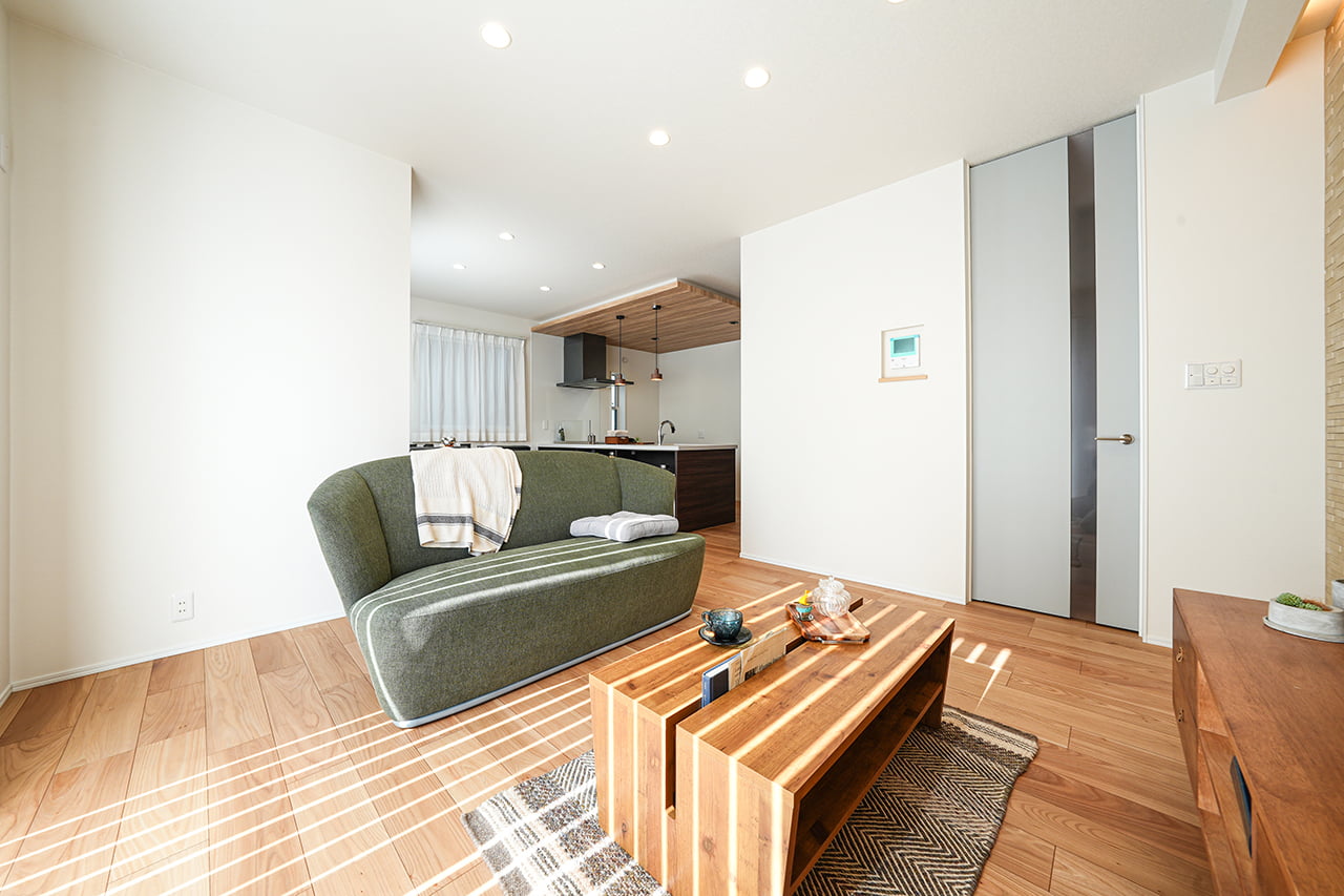 2階へ向かう際に、自然とリビングを通るよう設計された「リビングアクセス階段」。2階のプライベートな空間とパブリックなLDKを程よい距離感で結び、親子のコミュニケーションを優しく後押しします。