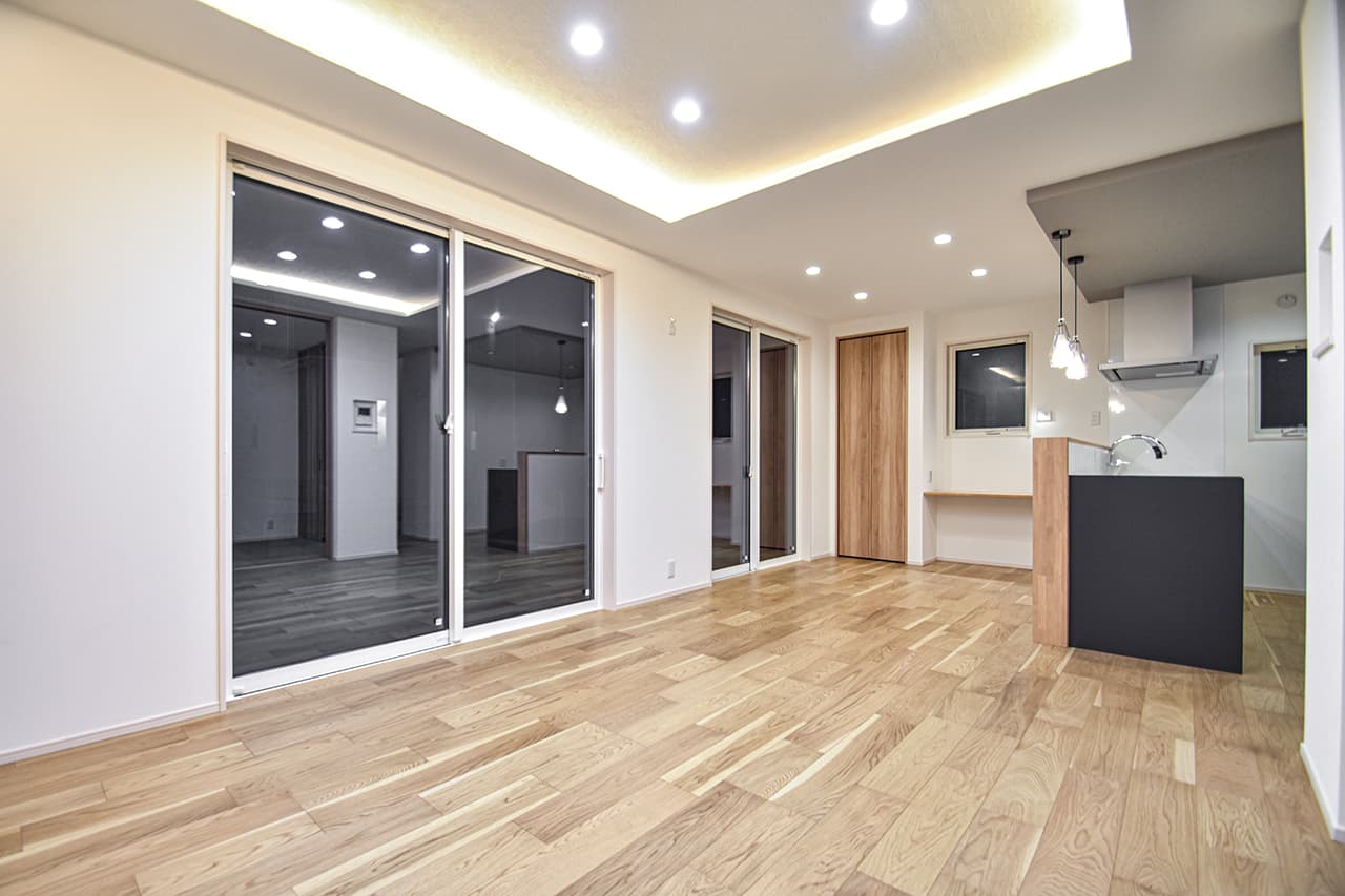 LDK空間の広さをより実感できるオープンキッチン。開放的で目線を遮るものがなくコミュニケーションが取りやすいため、料理をしながらの会話も弾み、お手伝いにも気軽に参加できます。