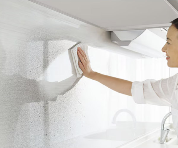 表面に特別なコーティングを加えることで撥油・撥水機能を高めました。乾拭きでも汚れが落とせる優れた清掃性により、コンロまわりの油ハネも、簡単に拭き取れます。