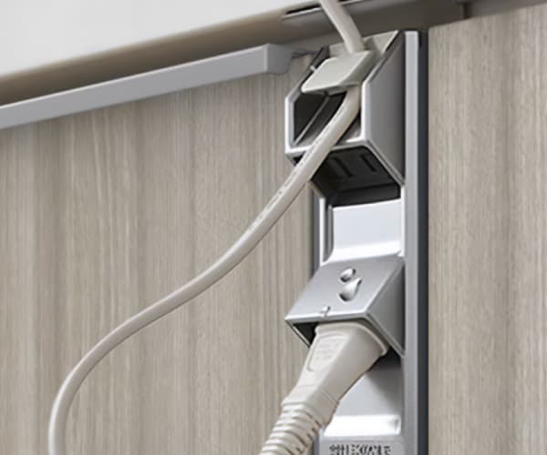 シンクキャビネットには、コードの抜き差しも簡単な手元部分の2口コンセントを装備。1500Wまで対応しているので、さまざまな調理家電が安心して使えます。