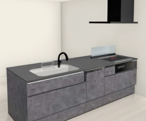 家族でのコミュニケーションがとれる対面型システムキッチンです。横一列にシンクとコンロをまとめたシンプルな形です。使いやすさと洗練されたスタイリッシュなデザインが魅力です。