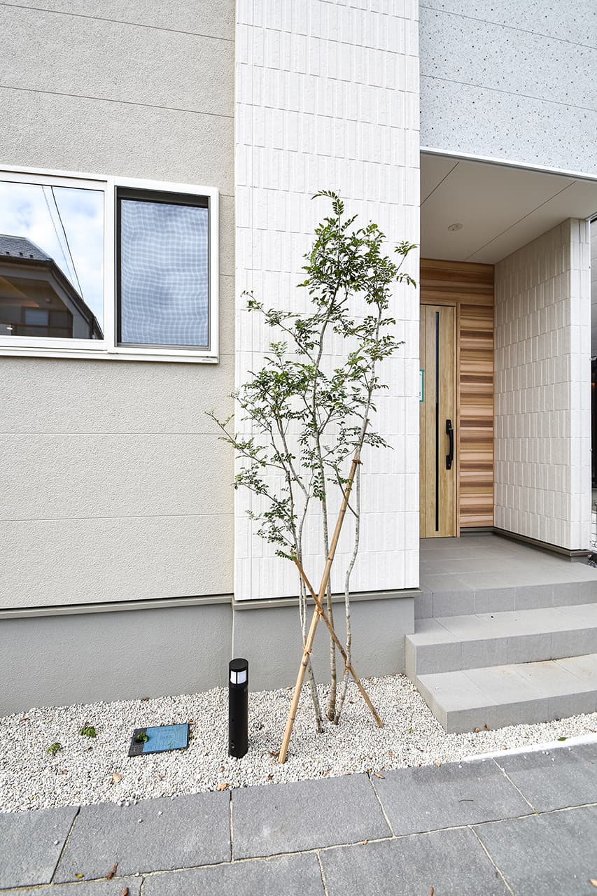 爽やかな白と重厚感を演出する黒がコントラストを描くファサード