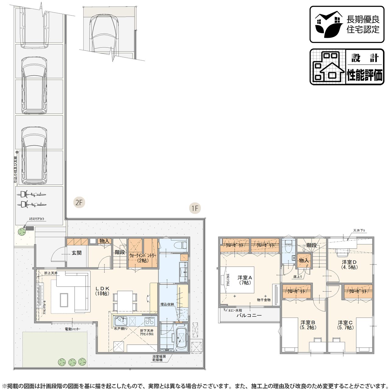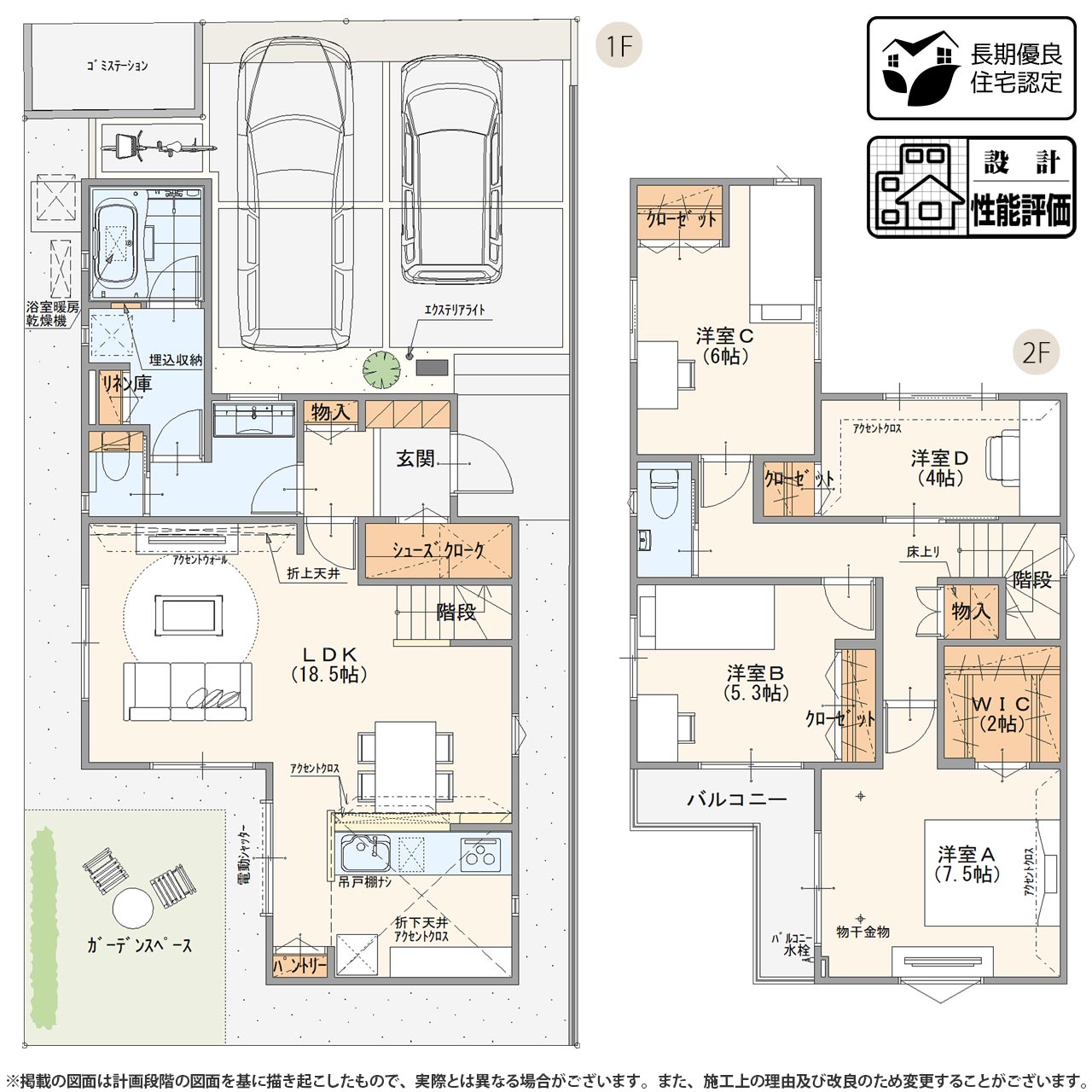 | 販売価格 | 6,490万円 〜 6,890万円(外構工事費・消費税込) ※販売価格には建物の消費税分が含まれます。 |