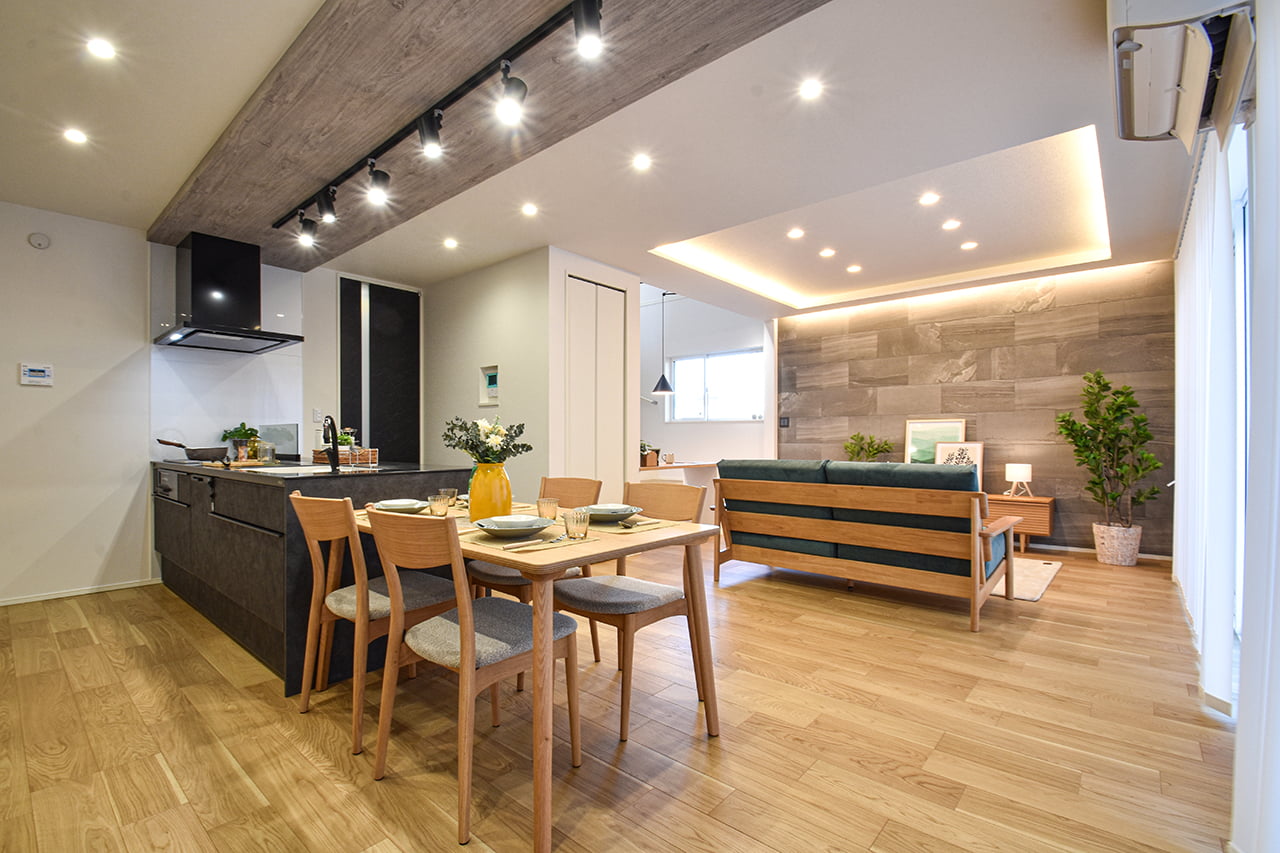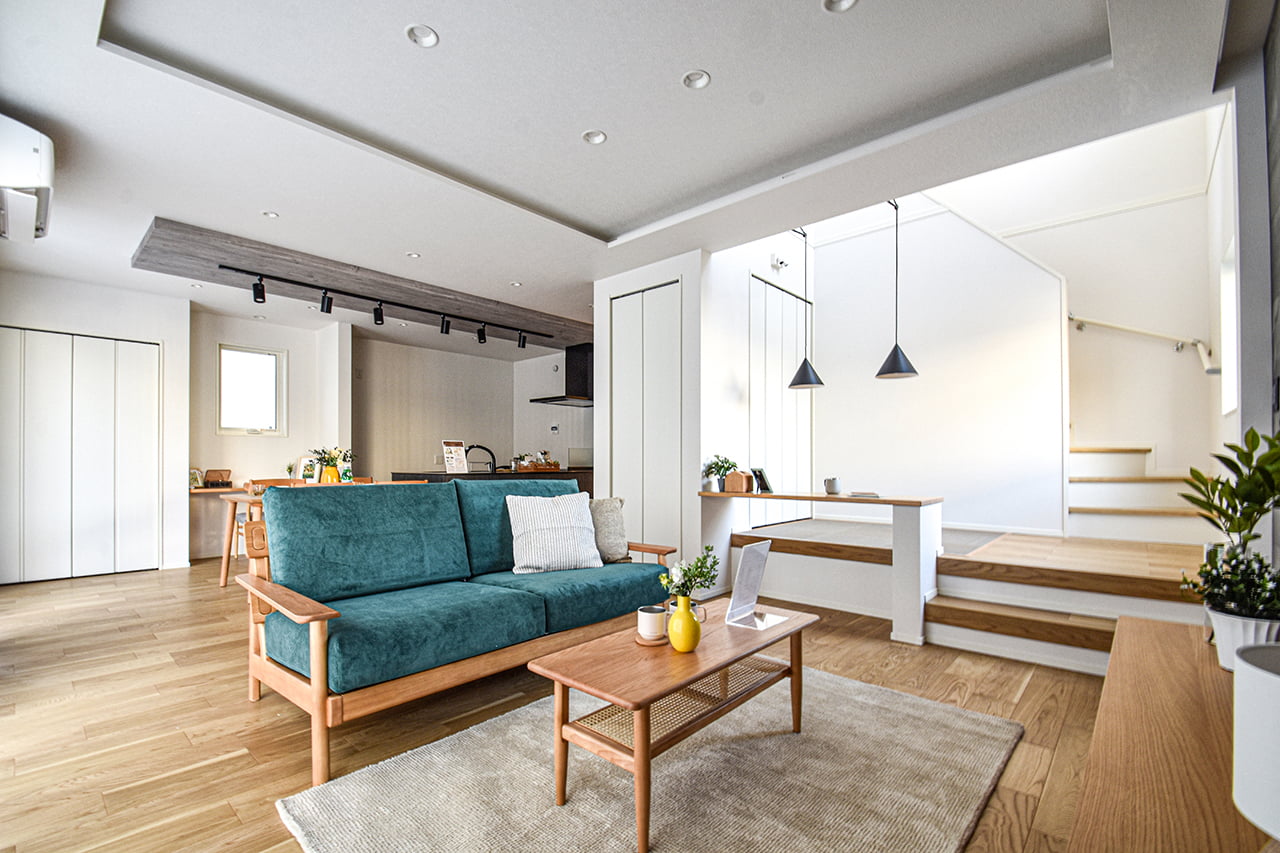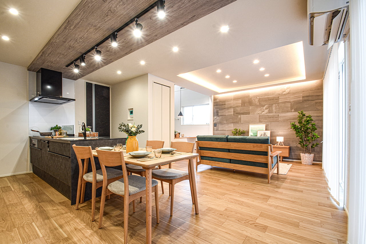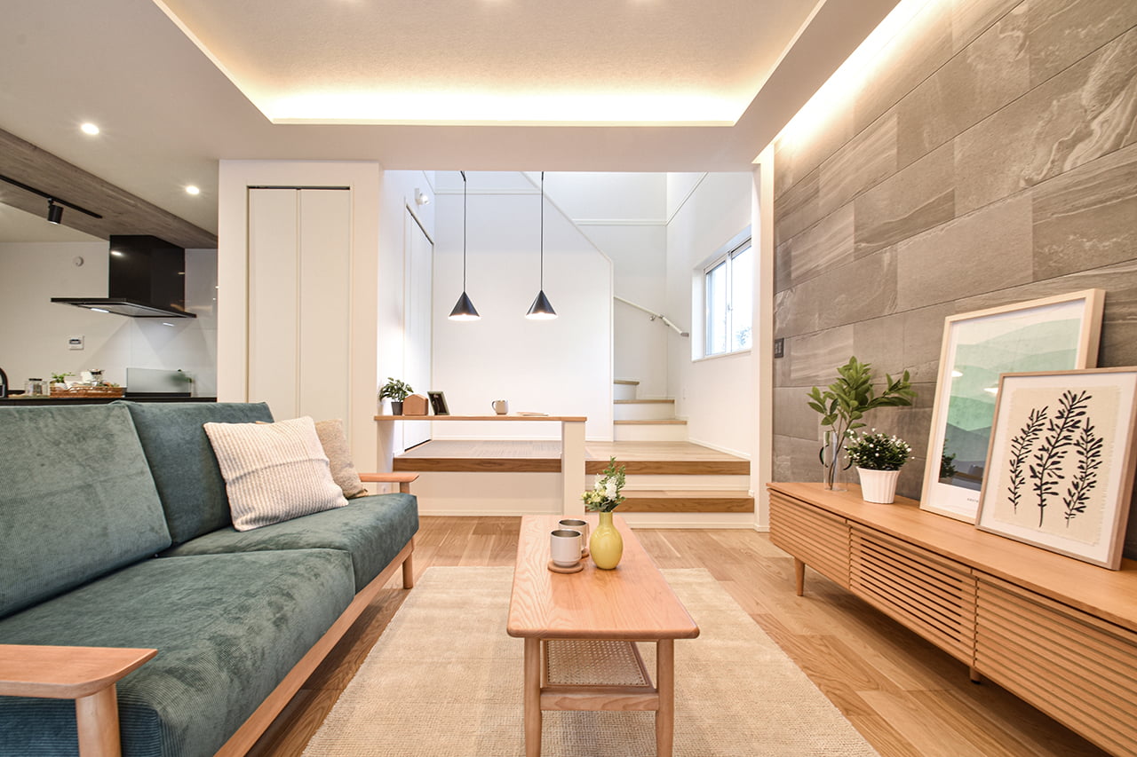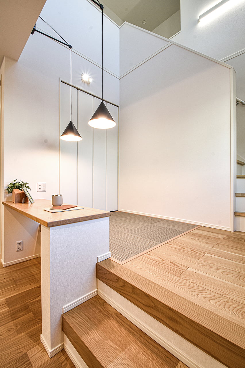 ご家族の団らんや寛ぎの中心となるリビング空間をさらに際立たせる吹抜け天井プラン。2階天井まで続くその圧倒的な存在感と広がりが訪れた方を驚きを持ってお迎えします。大切にしたいご家族やゲストをもてなす上質な空間です。