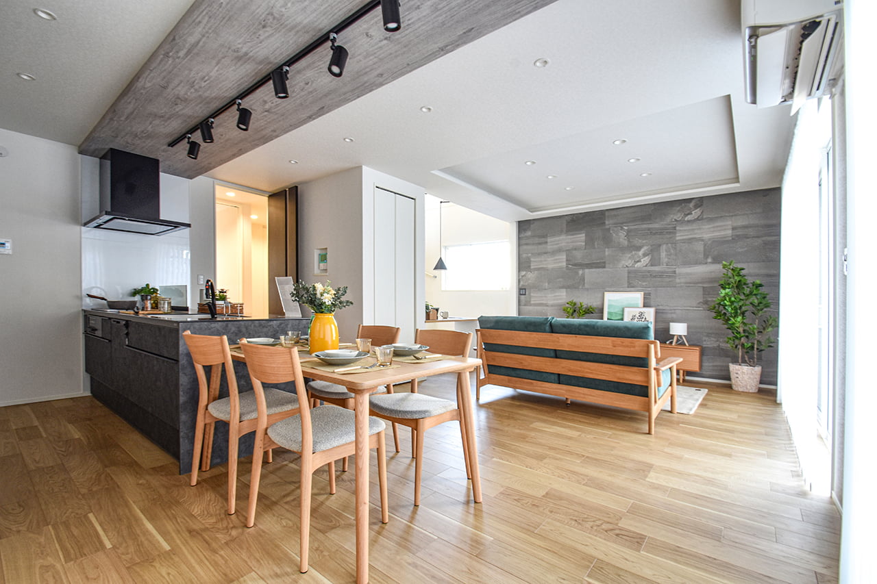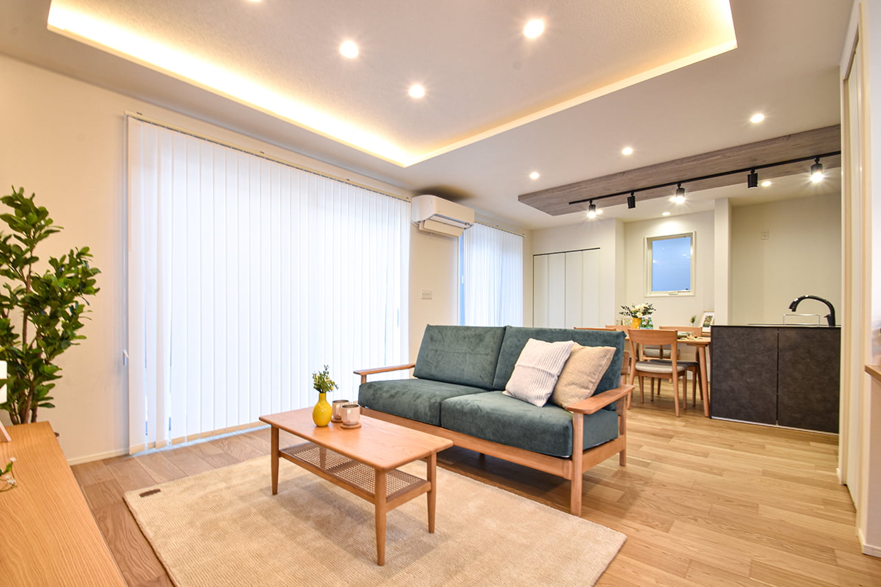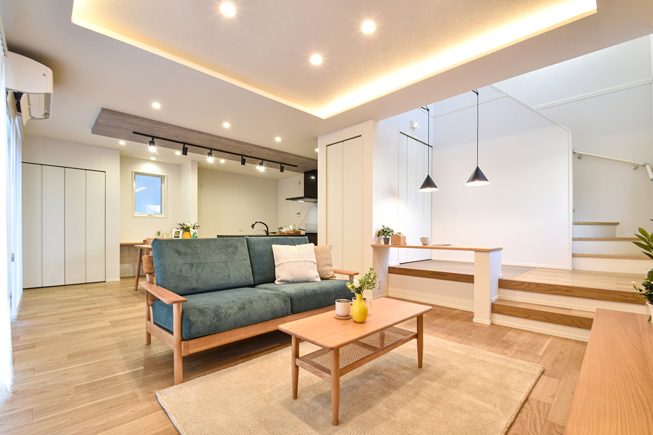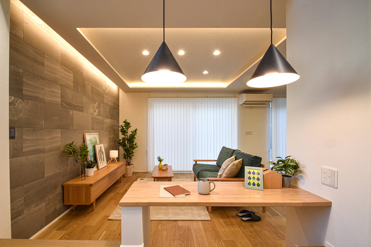 ご家族の団らんや寛ぎの中心となるリビング空間をさらに際立たせる吹抜け天井プラン。2階天井まで続くその圧倒的な存在感と広がりが訪れた方を驚きを持ってお迎えします。大切にしたいご家族やゲストをもてなす上質な空間です。