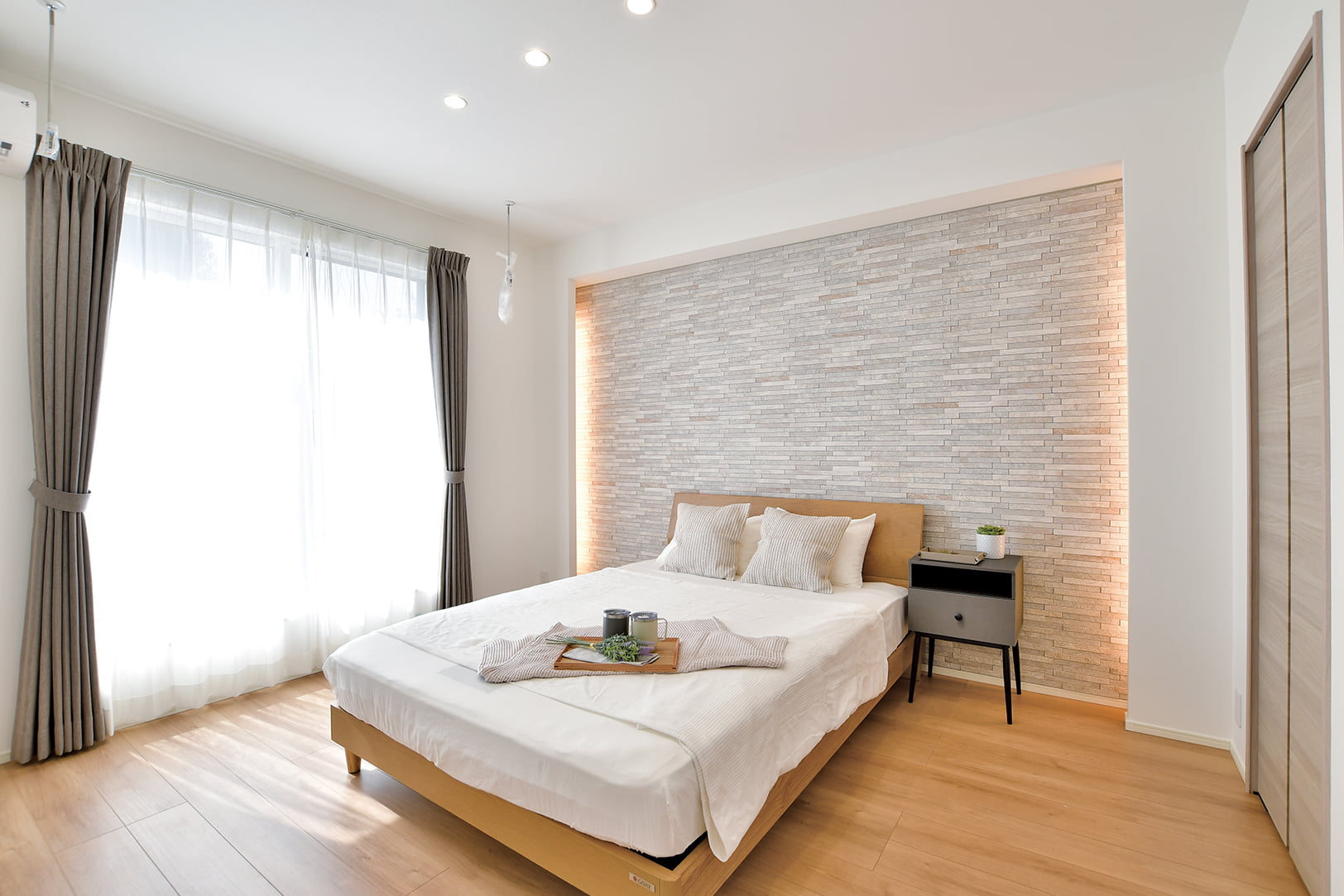 寝室に設えた間接照明。やわらかで幻想的な光の演出が、空間を落ち着いた雰囲気に包んでくれます。照明を活かしたインテリアコーディネートなど暮らしに楽しさをプラス。居心地を高め、深める空間プランニングです。