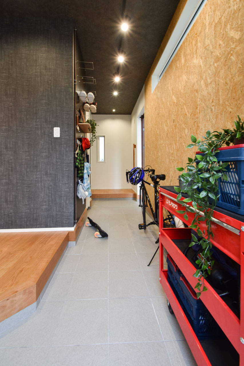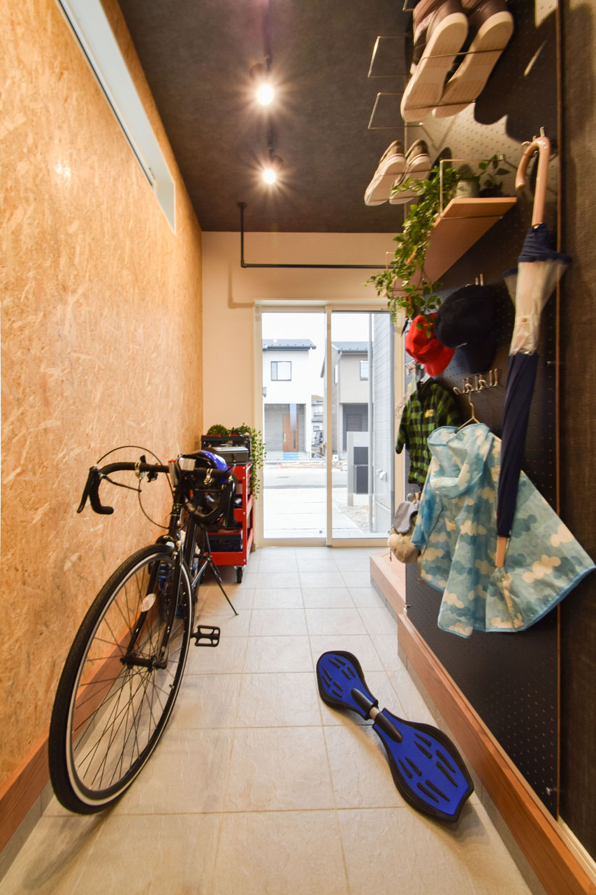 プライベート感を満喫しながら、外部空間と繋がる「アソビ土間」や「ホビースペース」。ロードバイクや自転車のガレージ。キャンプギアのメンテナンス。汚れがちなスポーツ用品の収納など。アクティブなパパが主役のご家族を満たす、アウトドア派納得の空間です。