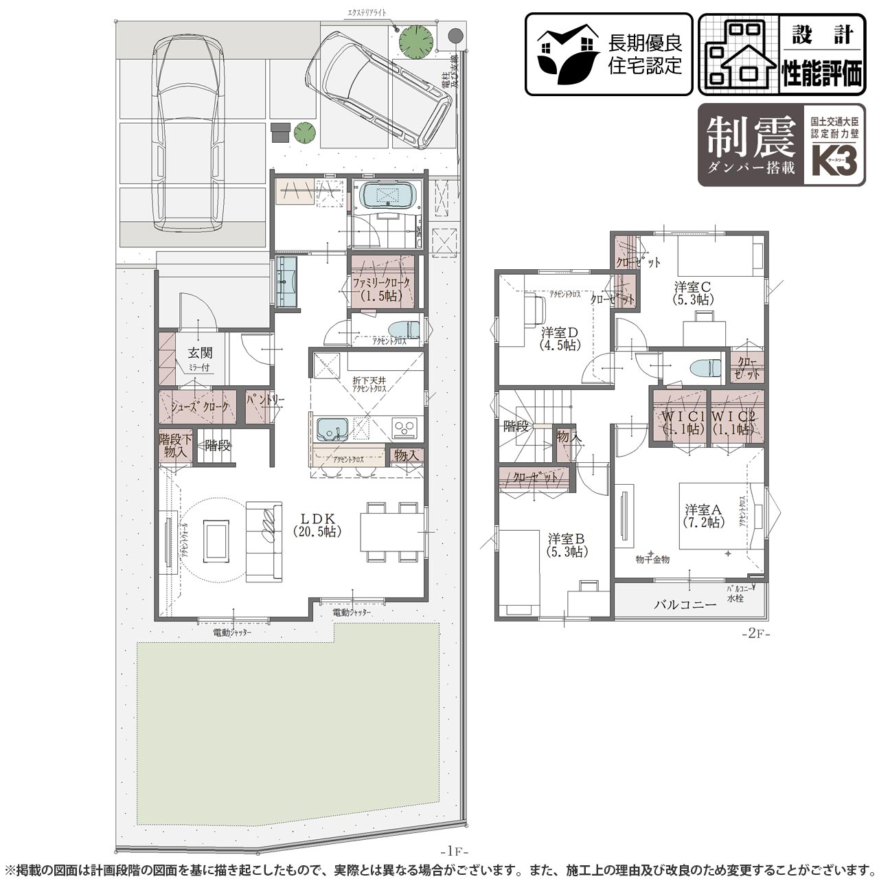 - 長期優良住宅認定&制震ダンパーK3採用