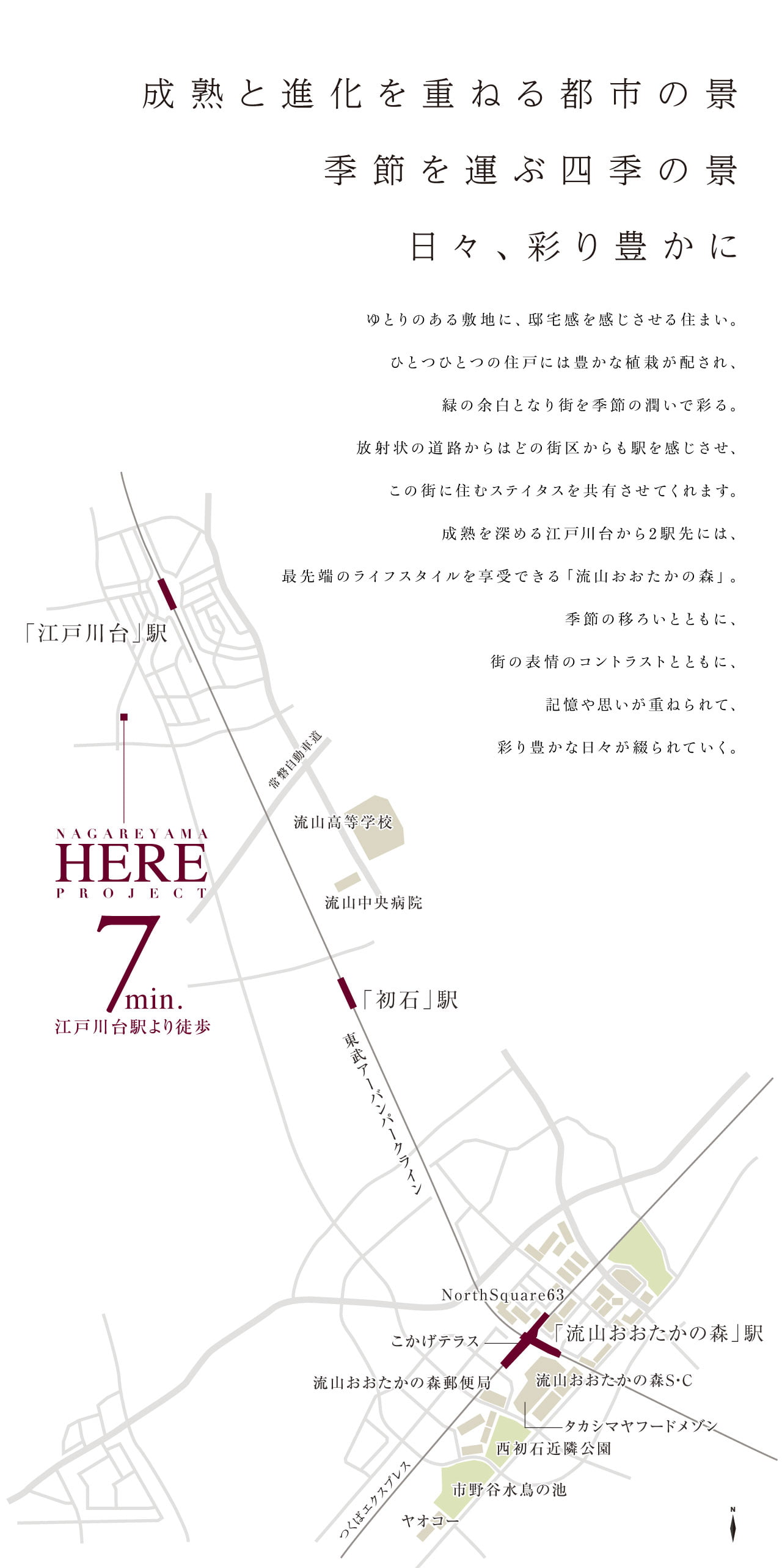 | 交通 | 東武アーバンパークライン「江戸川台」駅より徒歩 7分( 約500m ) 〜 徒歩 7分( 約510m ) つくばエクスプレス・東武アーバンパークライン「流山おおたかの森」駅より約3,200m 〜 約3,210m つくばエクスプレス「柏の葉キャンパス」駅より約4,900m 〜 約4,910m 東武バス「江戸川台駅東口」停留所より徒歩 10分( 約750m ) 〜 徒歩 10分( 約760m ) |