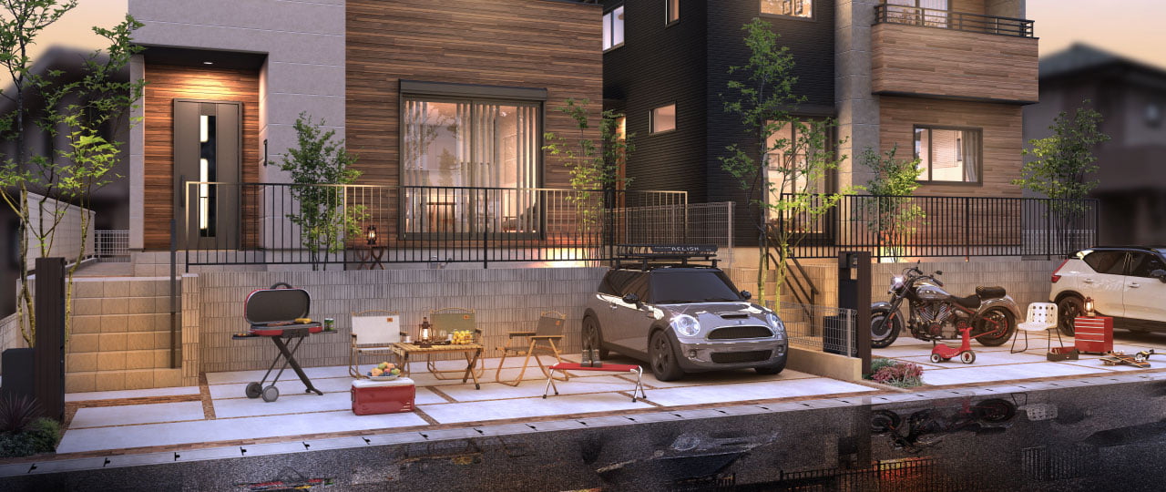 プライベート感を満喫しながら、外部空間と繋がる「アソビ土間」や「ホビースペース」。ロードバイクや自転車のガレージ。キャンプギアのメンテナンス。汚れがちなスポーツ用品の収納など。アクティブなパパが主役のご家族を満たす、アウトドア派納得の空間です。