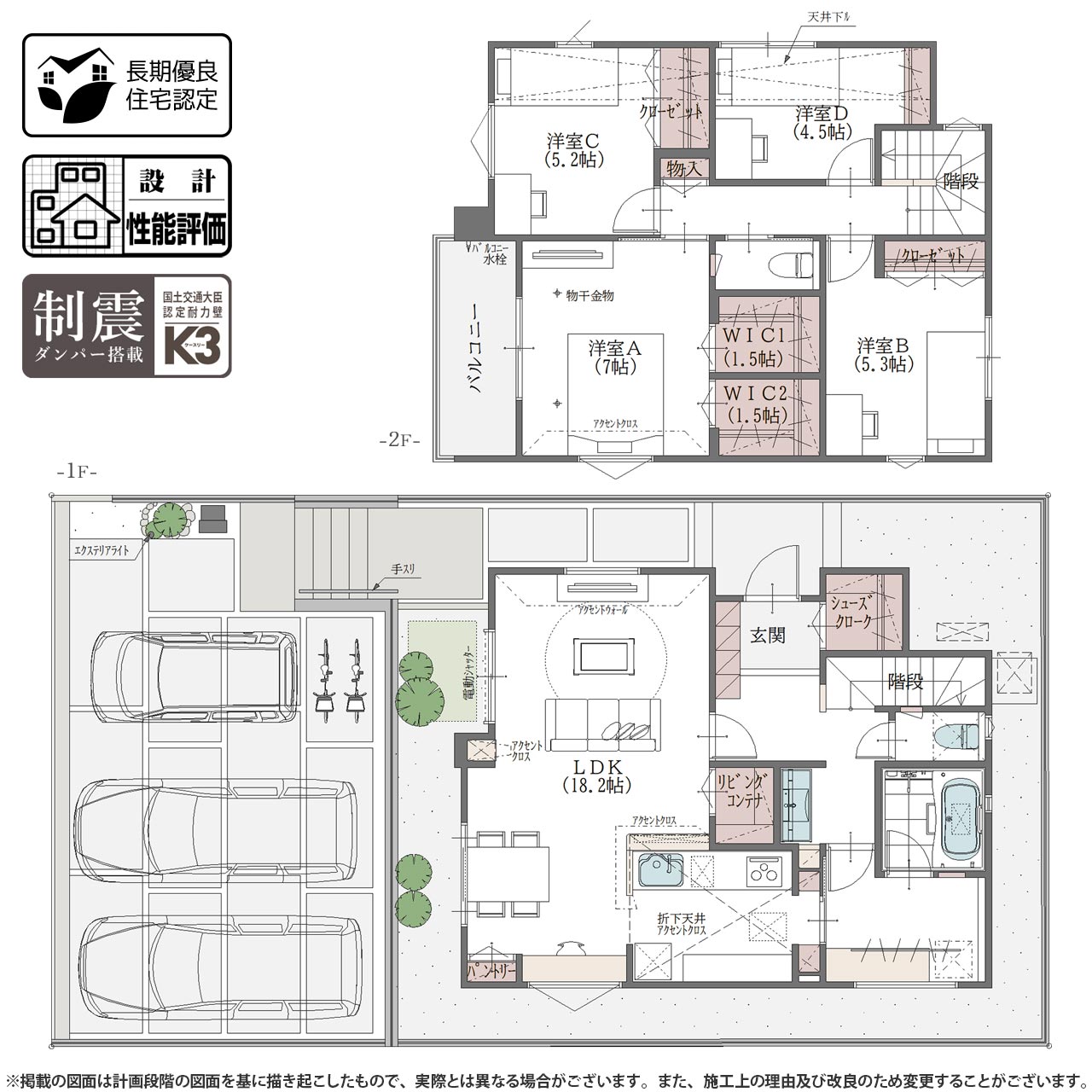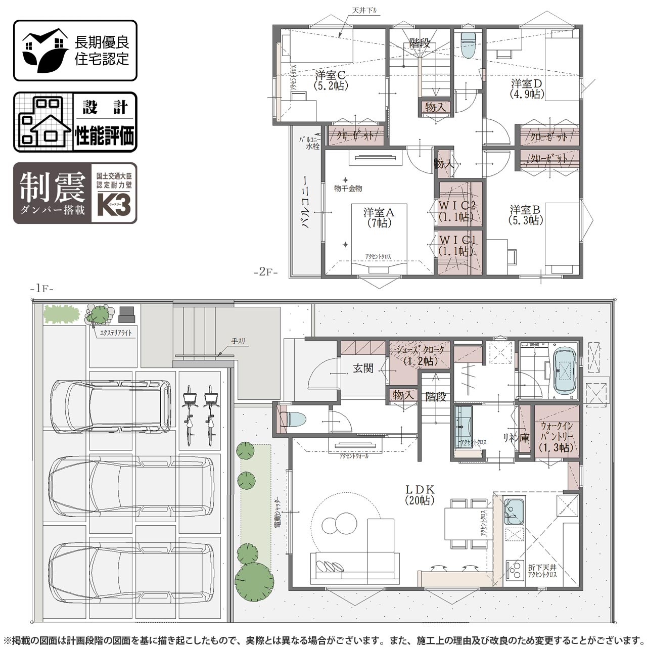 | 備考2 | ※各号地の上空を電線が通過します。 ※掲載の図面は計画段階の図面を基に描き起こしたもので、実際とは異なる場合がございます。また、施工上の理由及び改良のため変更することがございます。 ※カースペース:3台(3台目は軽自動車対応となります。) ※こちらの物件は予告広告です。本広告を行い、取引を開始するまでは、契約及び予約のお申し込みは一切できません。また、申し込み順位の確保に関する措置は講じられません。予めご了承ください。(2026年6月中旬販売開始予定) |