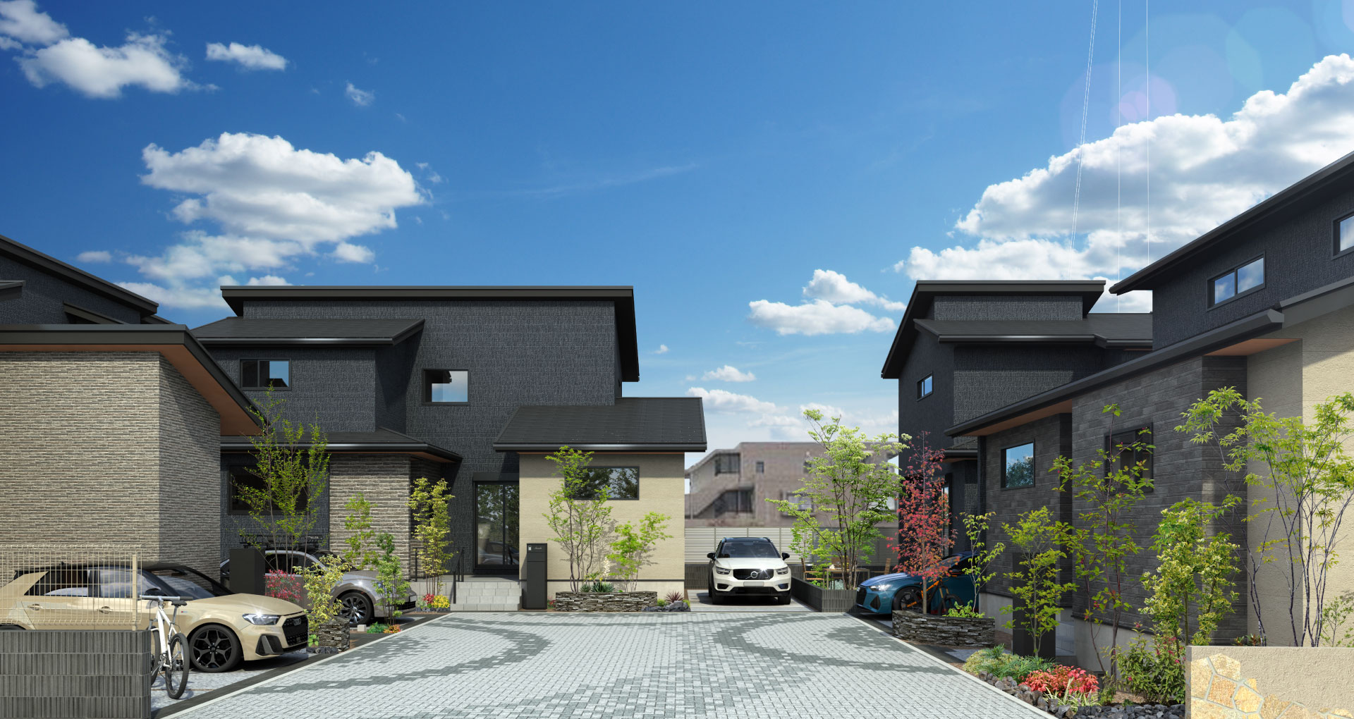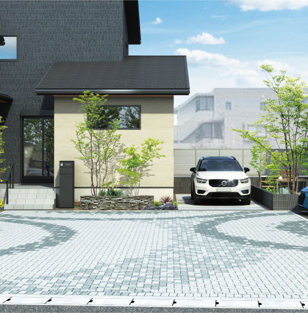 全邸2台分のカースペース車を2台駐車できることで、ライフスタイルの選択肢が広がります。また街並みにオープンスペースが生まれ、豊かな開放感が感じられます。