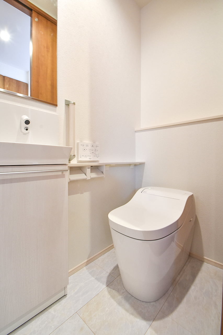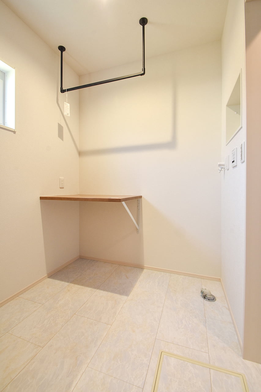 脱衣所と洗面所スペースをセパレートした独立洗面台。来客時など、あまり見せたくない洗濯機まわりを気にする事なく、洗面所を利用することができます。