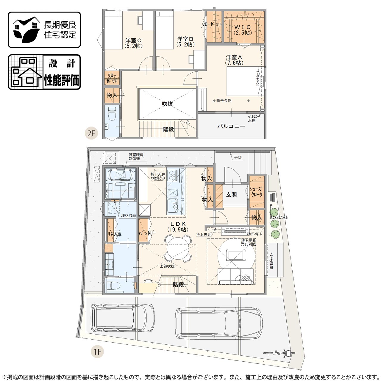 通勤やレジャーなど、ライフスタイルを広げてくれるカースペースを2台分確保しました。来客用の駐車スペースとしても最適です。