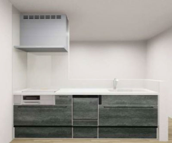 家族でのコミュニケーションがとれる対面型システムキッチンです。横一列にシンクとコンロをまとめたシンプルな形です。動きやすさとスタイリッシュなデザインが魅力です。