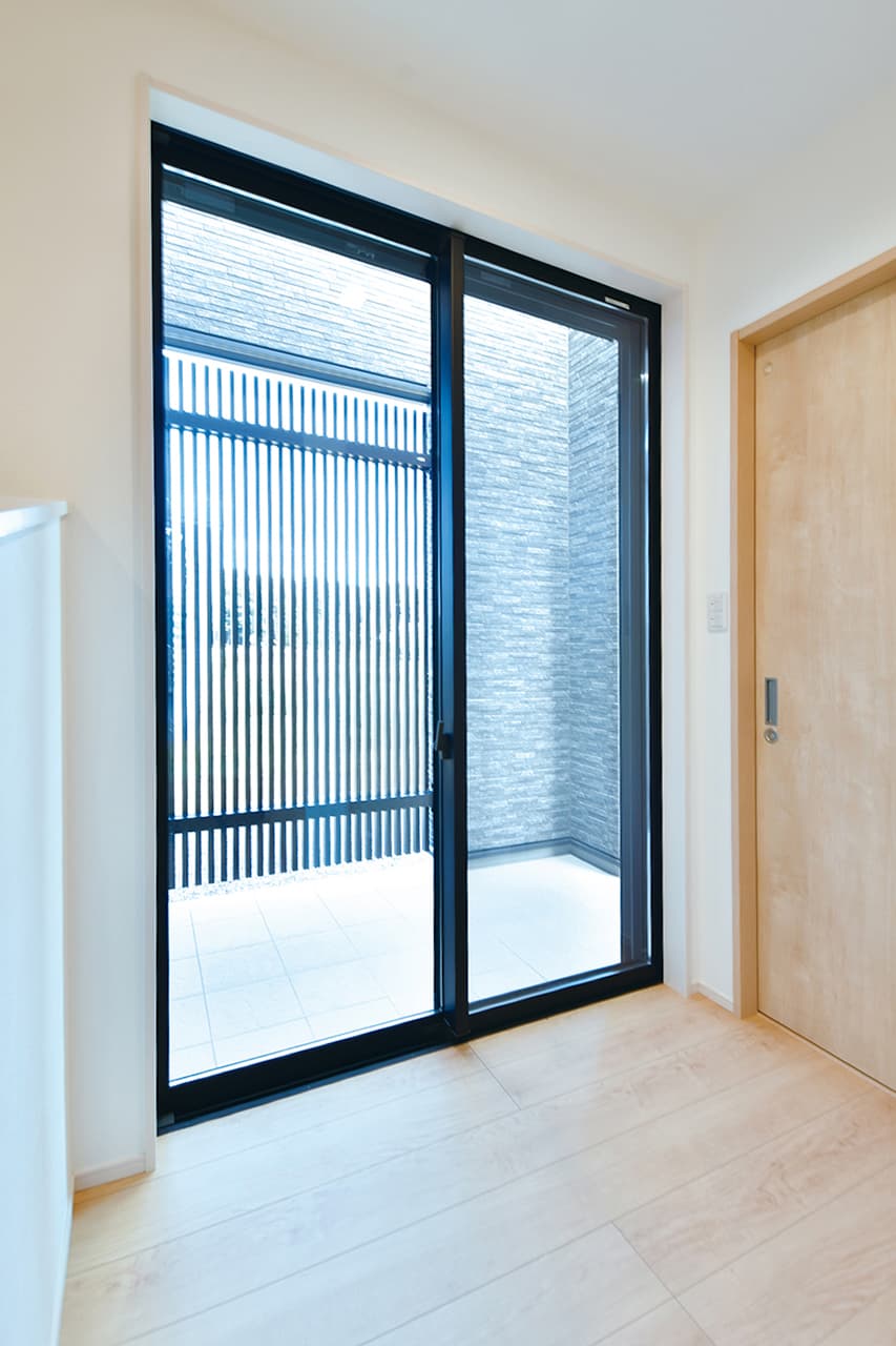 4. テラスへと視線が抜ける玄関ホールが、心地よい開放感で迎える住まい