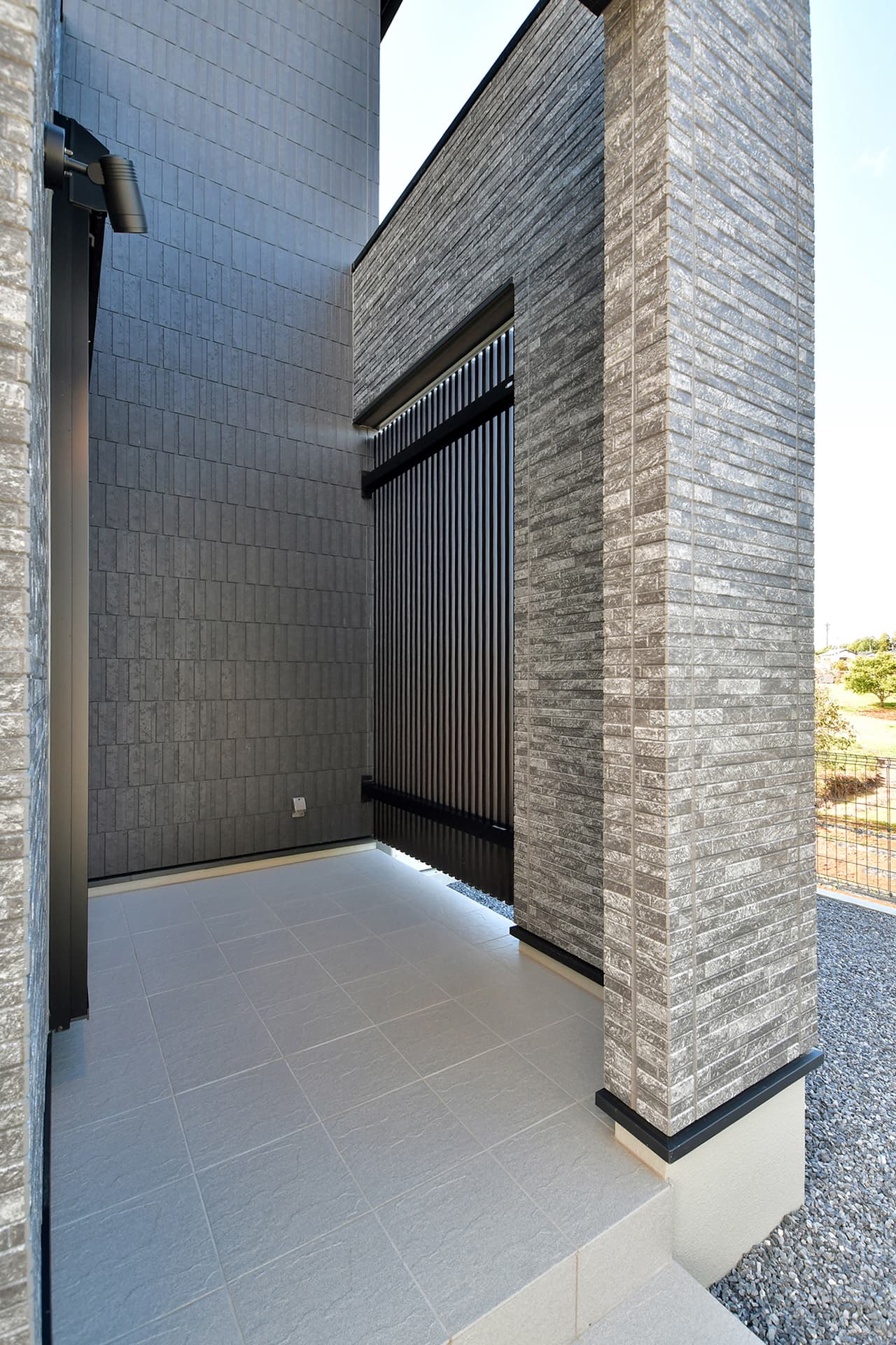 テラスへと視線が抜ける玄関ホールが、心地よい開放感で迎える住まい