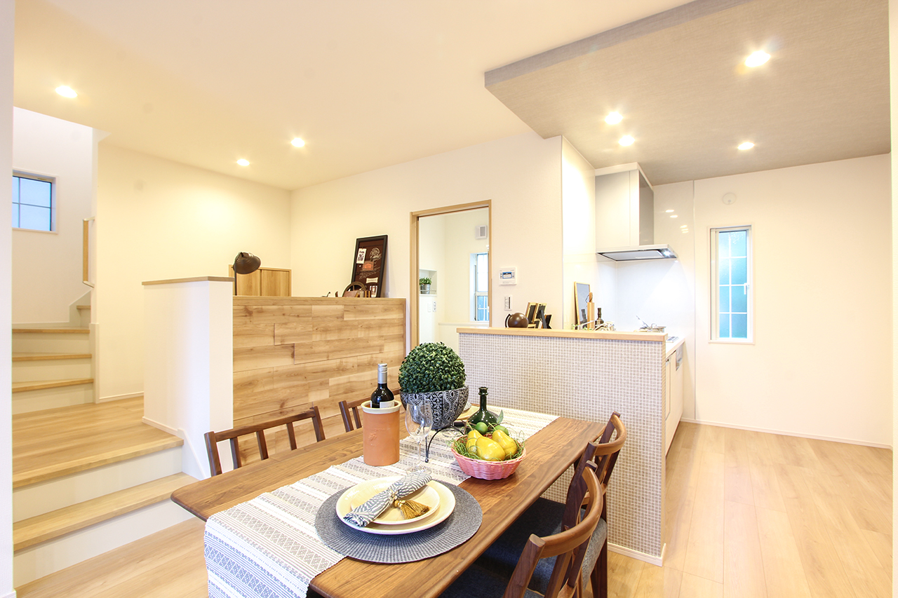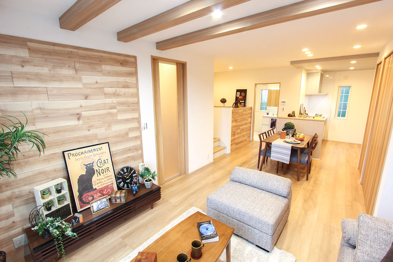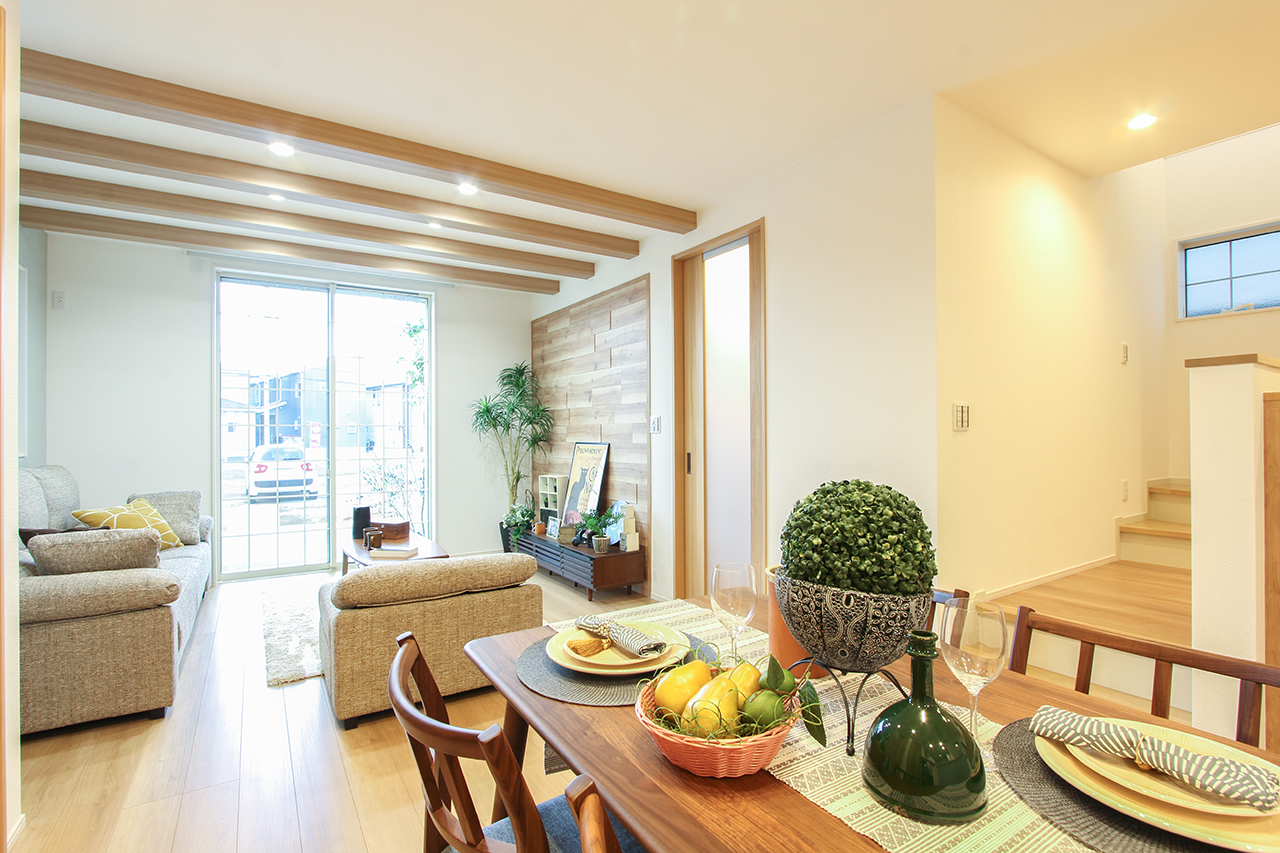 4. LDKや玄関の天井を印象的に彩る!化粧梁や間接照明のある家