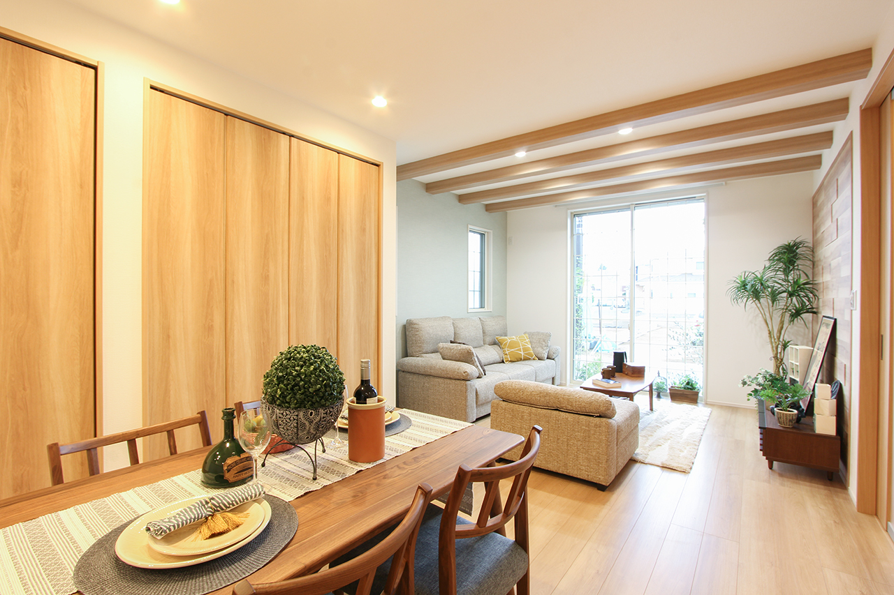 LDKや玄関の天井を印象的に彩る!化粧梁や間接照明のある家