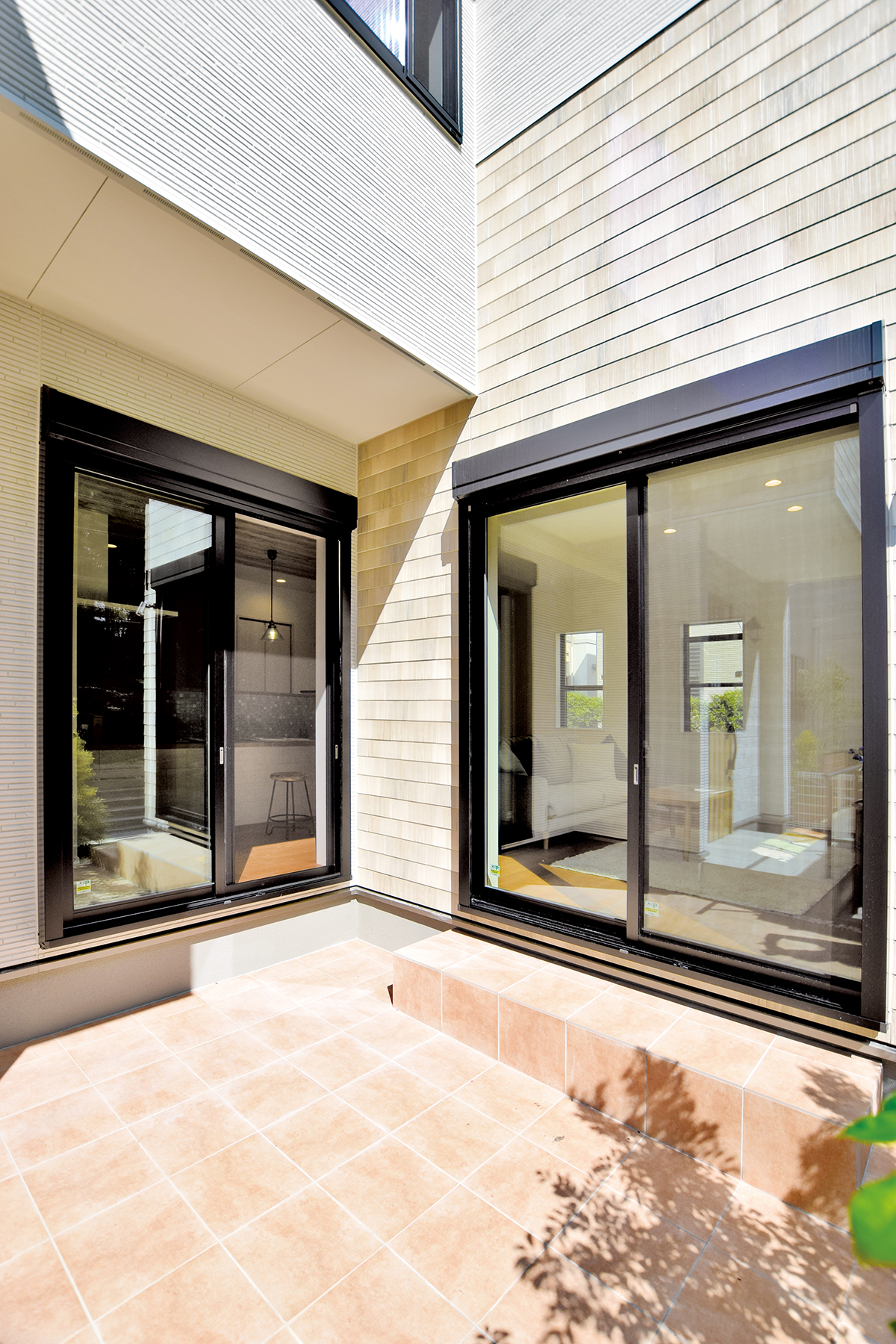 4. 外と内を緩やかに結ぶテラスガーデン、緑と光のカフェテラスキッチン