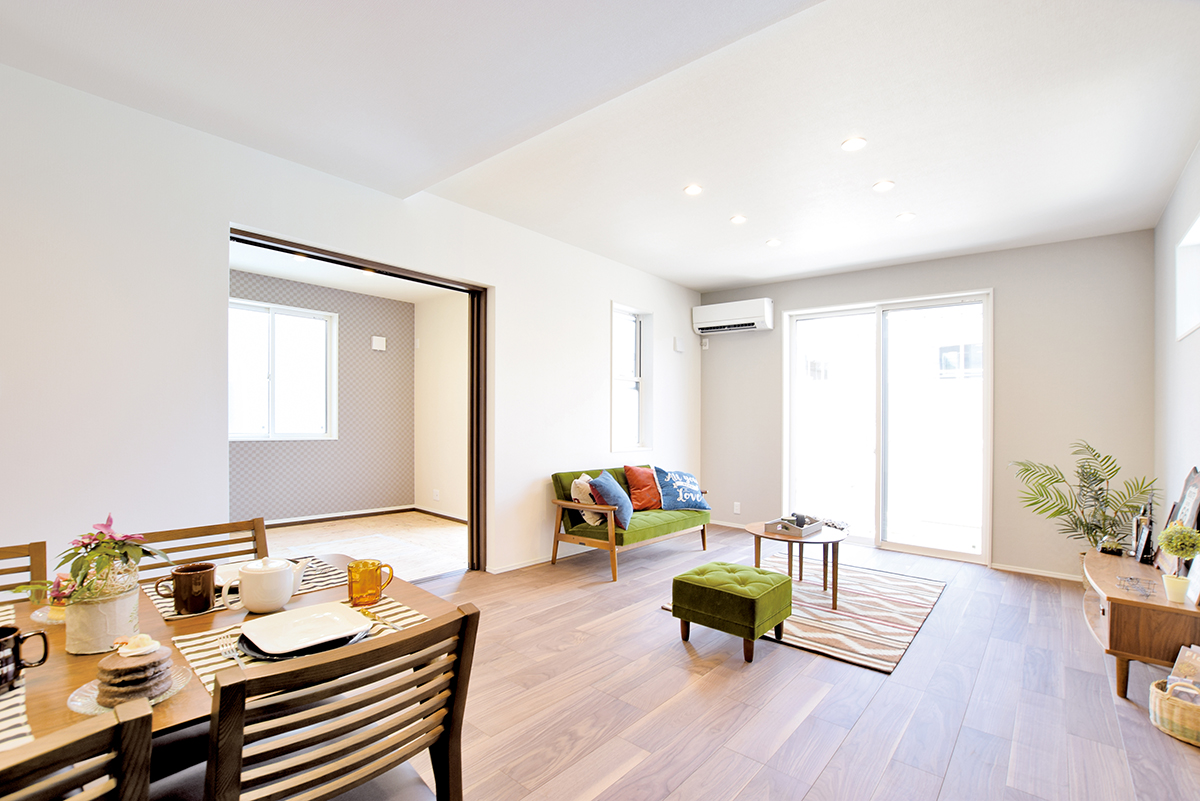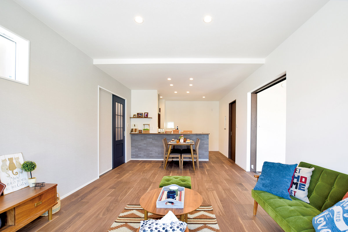 心地よい寛ぎを届ける17.7帖の大空間LDK。居住性を高める機能的な2帖の納戸やペアWIC。