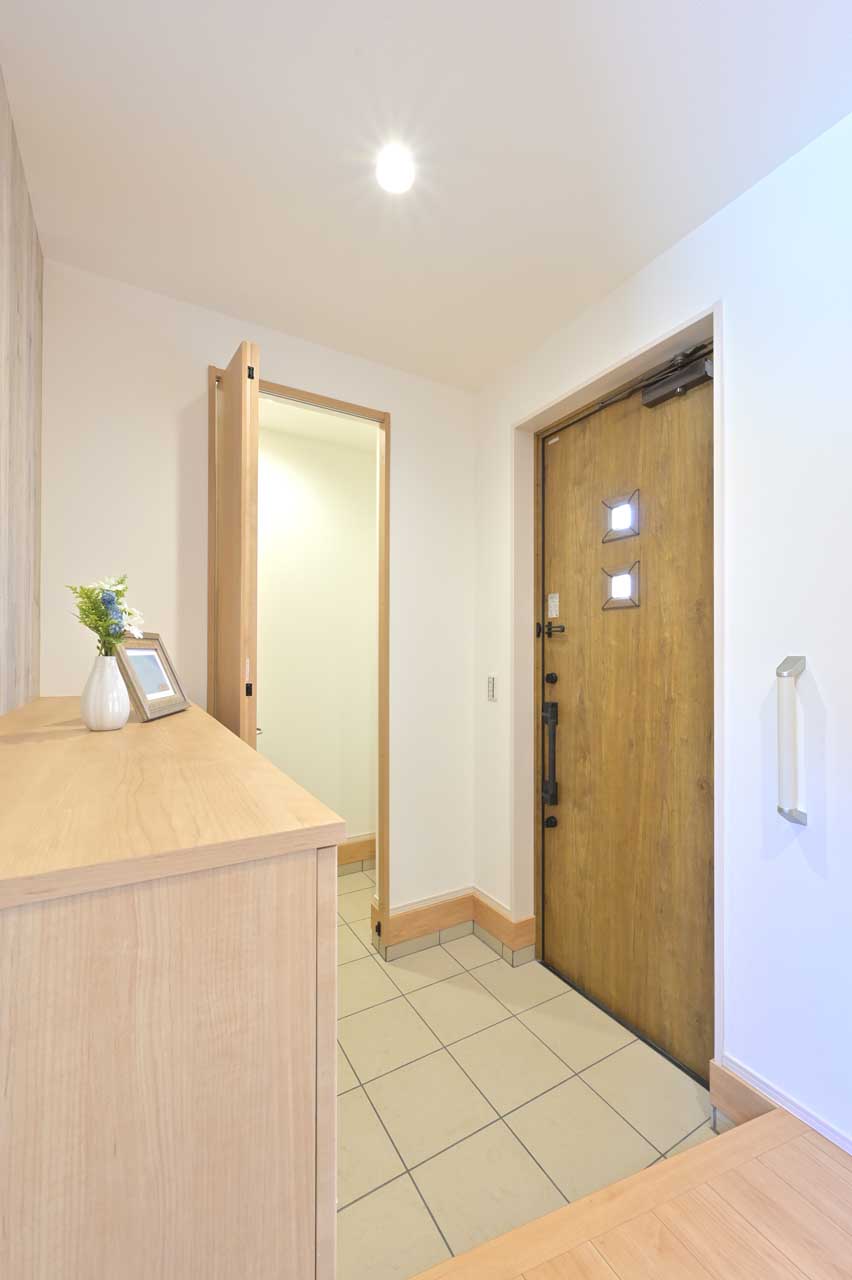 玄関からリビングの動線上に、「ただいま手洗い」と「ただいまクローク」を採用した新プラン。ご家族の健やかな育みと健康を動線に描いたこのプランは、帰宅してから部屋の中を通らずにすぐに手洗い・うがいができ、ご家族の衛生習慣を自然な流れで促します。また、来客時などにも玄関先でのご案内をスマートにこなすことができるのもポイントです。
