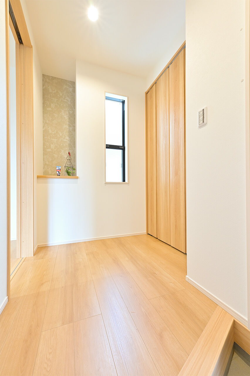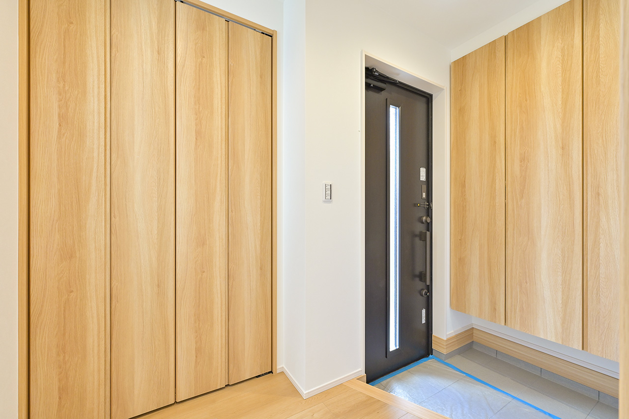 4. 玄関ホールのそばに設けたクローゼットスペースのある家