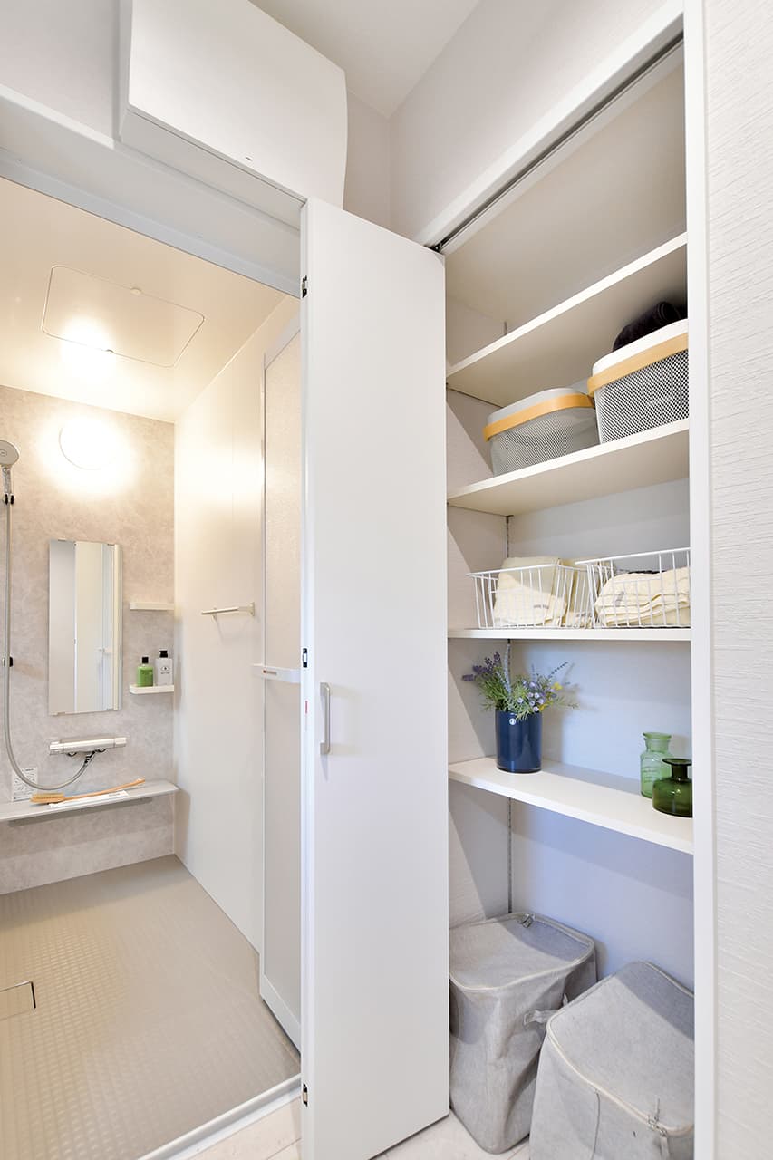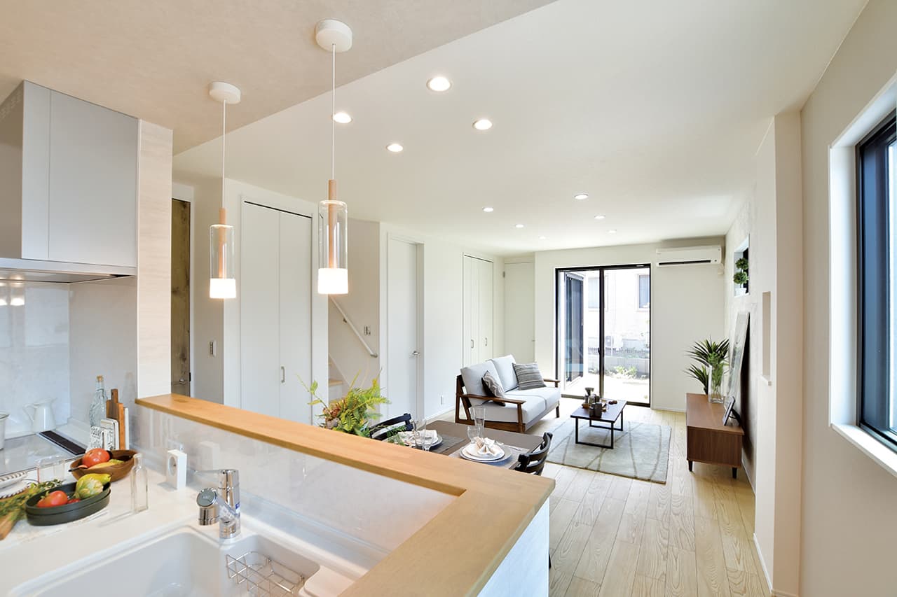 洗濯物はもちろん、ベランダガーデニングやティータイムにも使える、奥行きのあるバルコニーの家