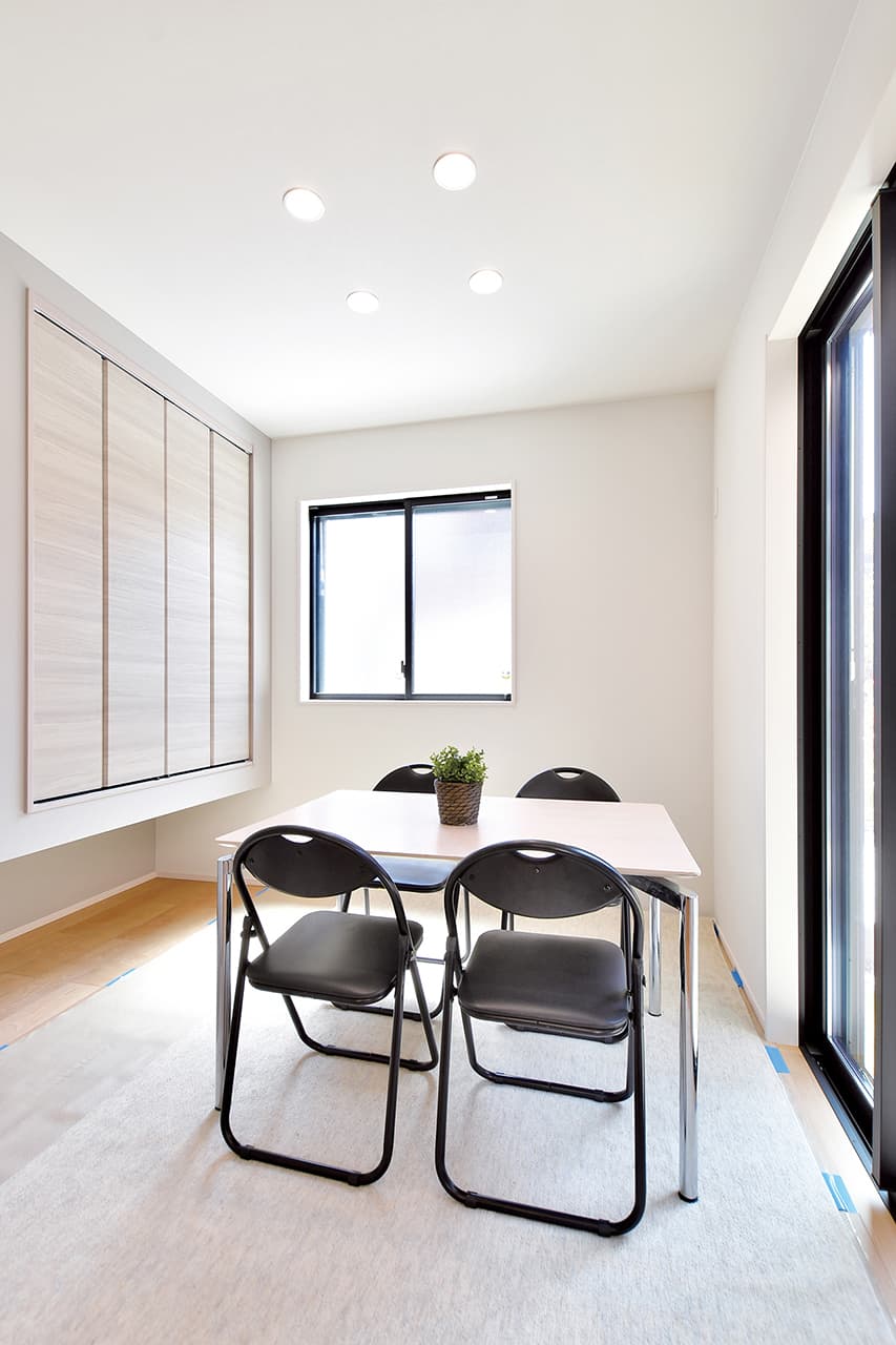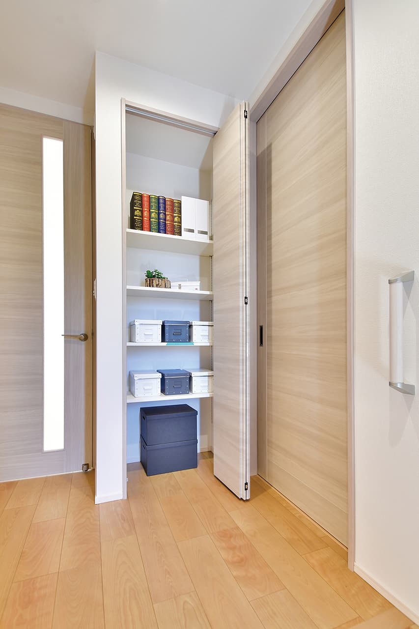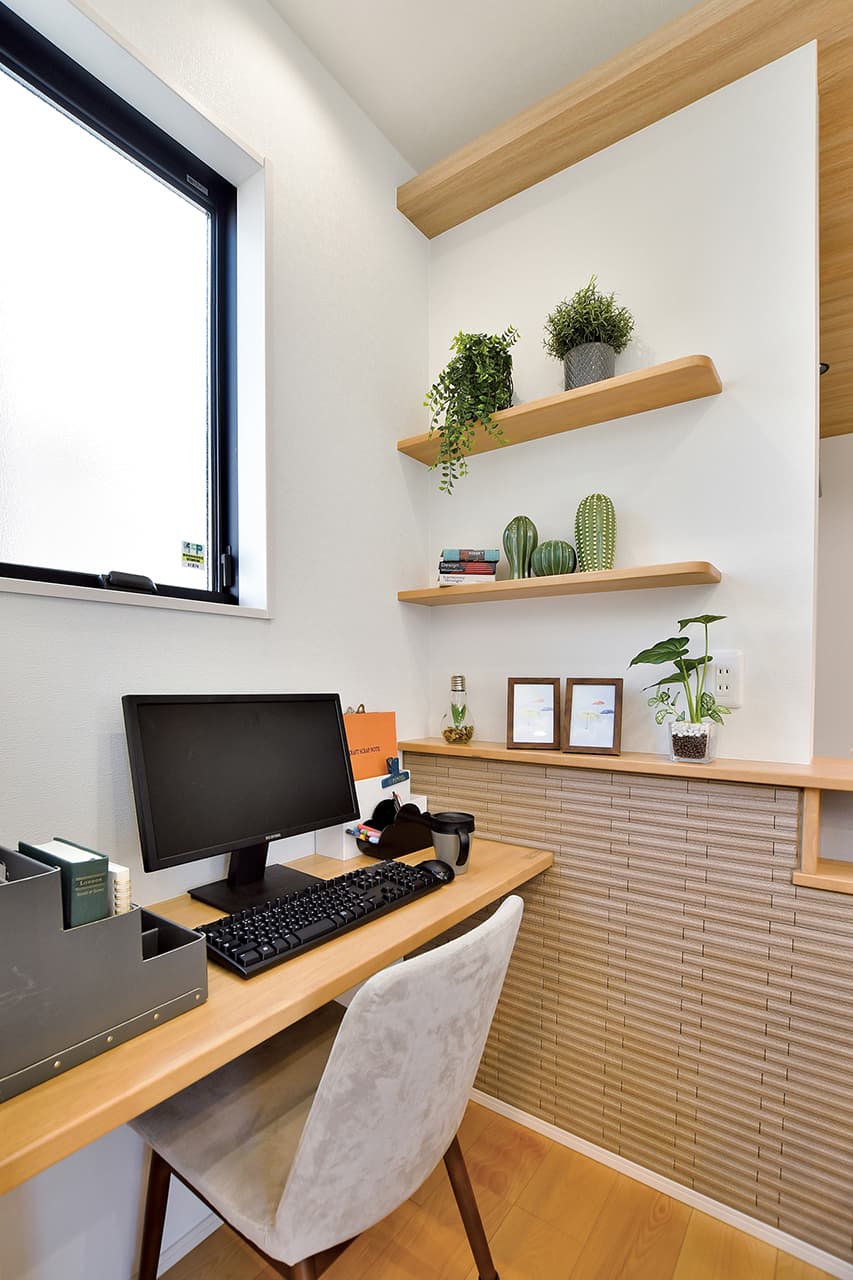 4. 肌触りのいいタイルカーペット敷のテキスタイルルームのある家
