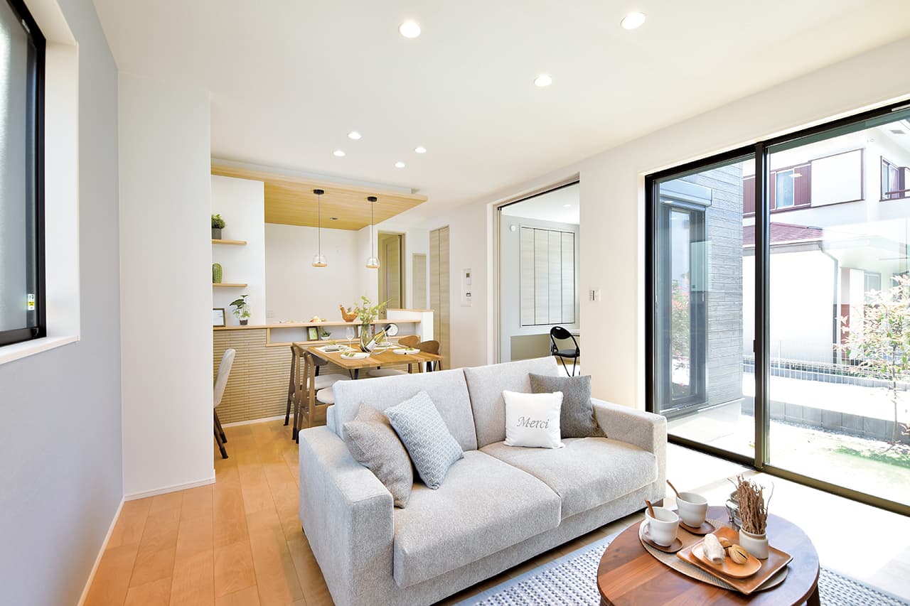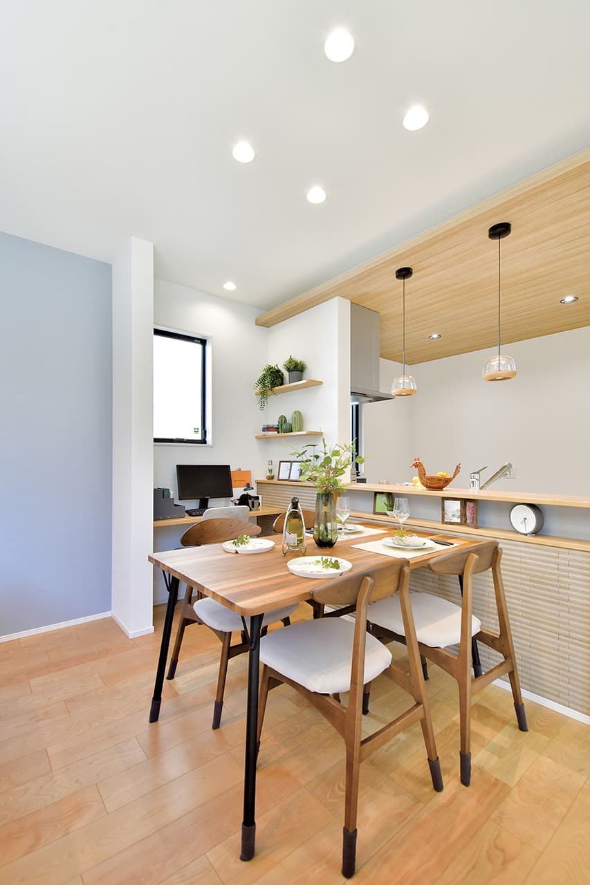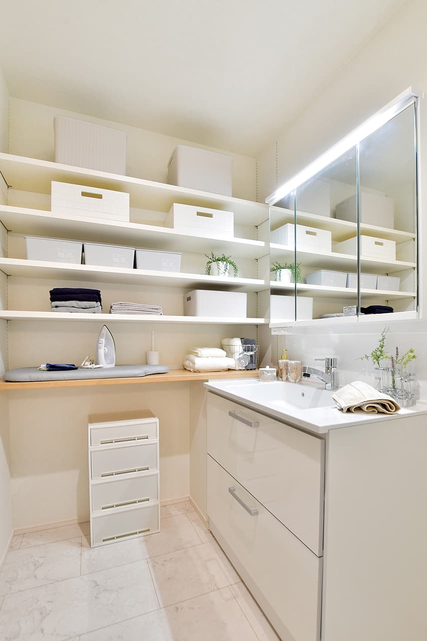4. 肌触りのいいタイルカーペット敷のテキスタイルルームのある家