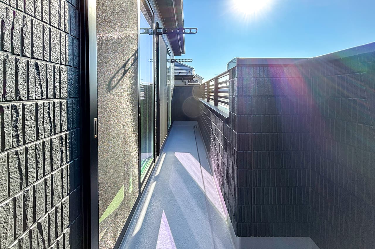 2部屋から出入りできる便利なワイドバルコニーは、洗濯物や布団を干すのに便利です。また、ゆとりの広さも魅力です。