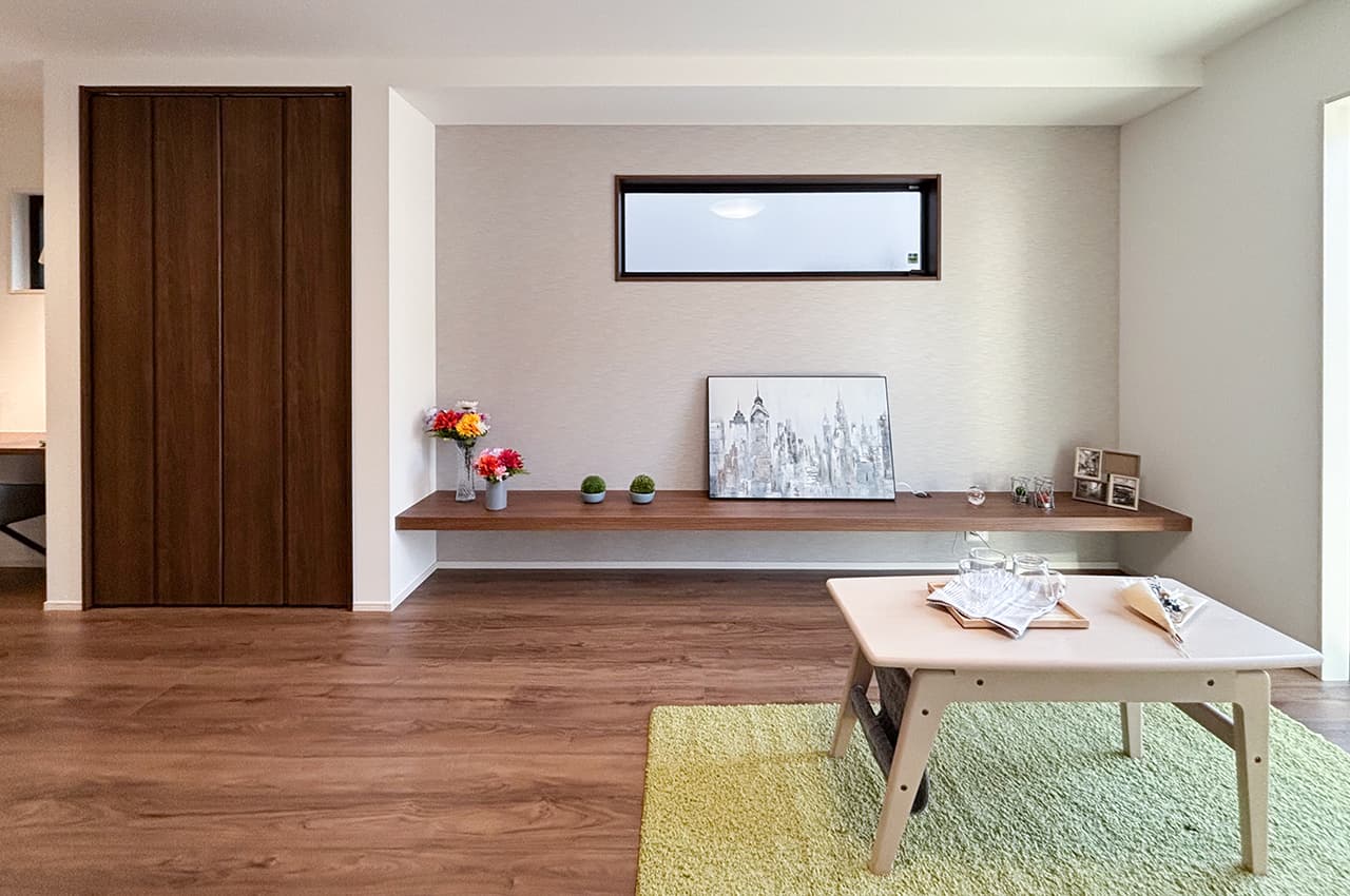 造作テレビボードも設置し、室内のグレード感もアップ。