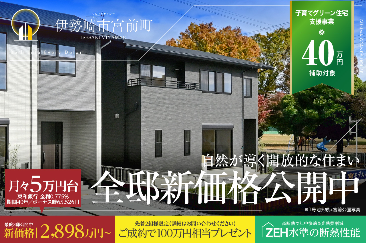 ご好評につき(グランプレミアム伊勢崎今泉町1丁目2期)の販売は終了いたしました。